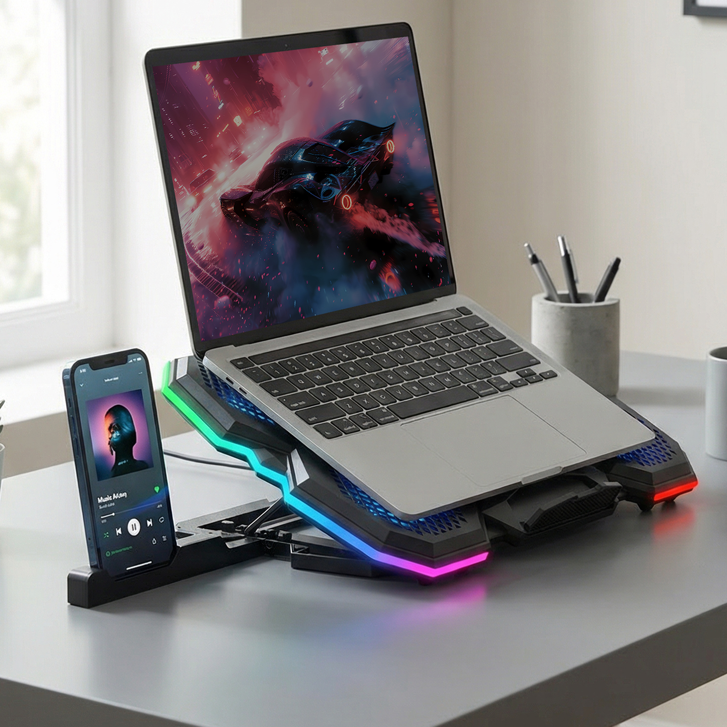 Addison Rampage AD-RC14 X-RANGER 10 Mode RGB 1*125mm + 4*70mm Fan 9-17 Notebook Soğutucu Stand