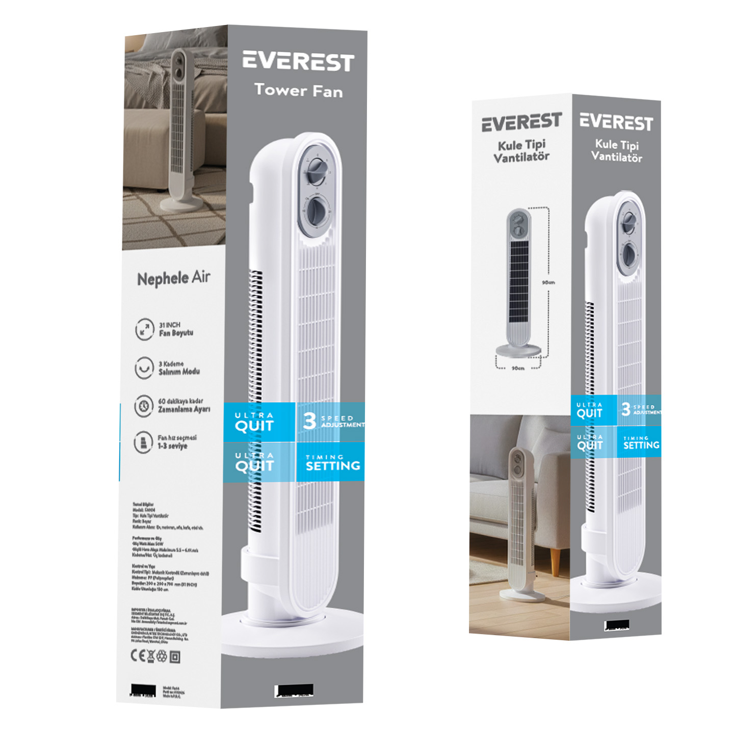 Everest FAN14 Beyaz 31 50W 3 Hız Kademeli Zamanlayıcı Kule Tipi Zamanlayıcı Vantilatör/ Pervanesi