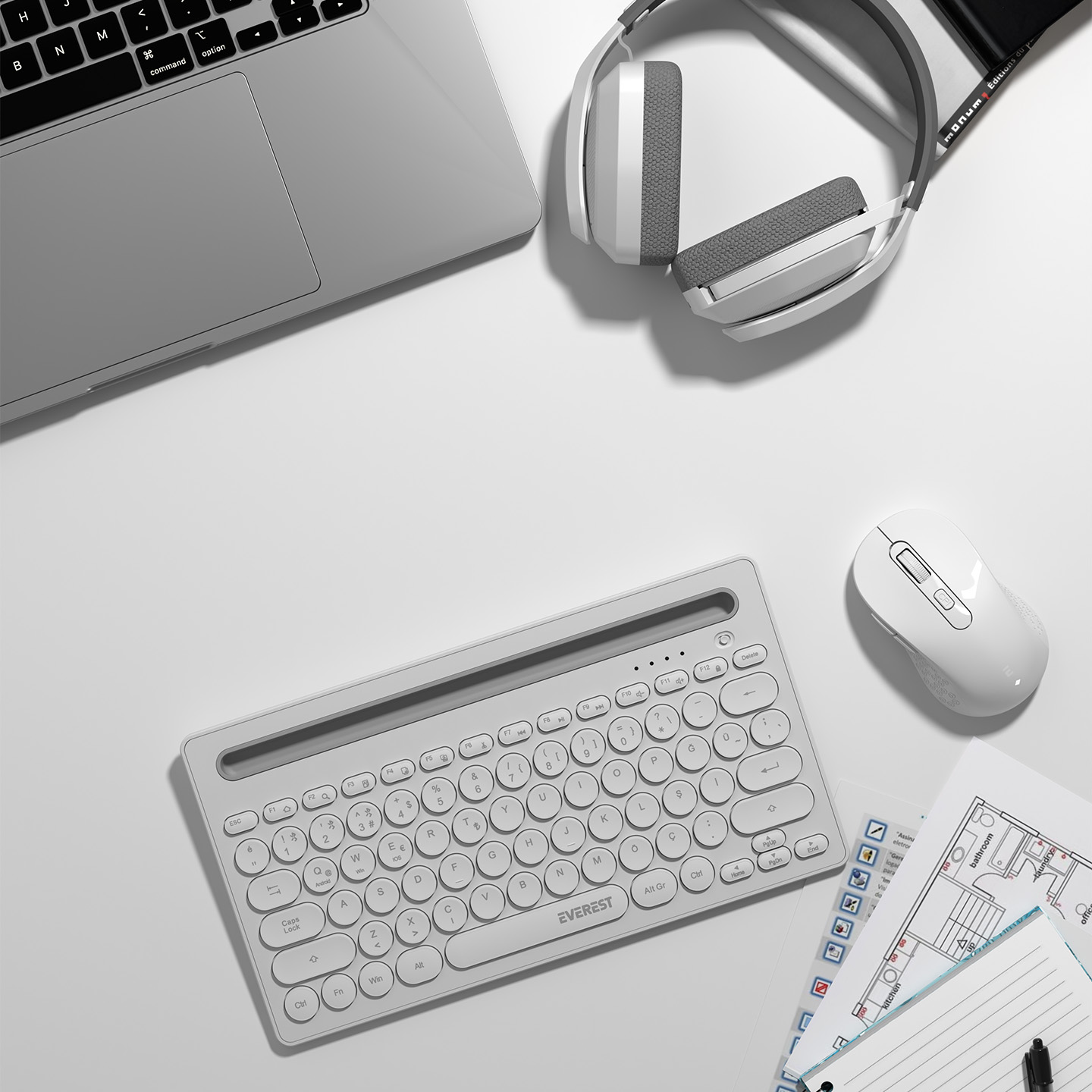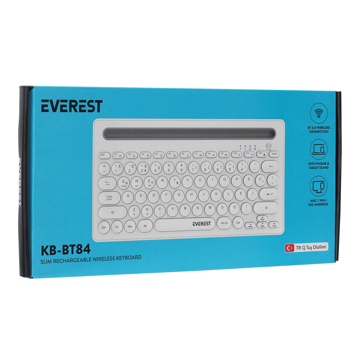Everest KB-BT84 Beyaz/Gri Bluetooth Ultra İnce+Şarjlı Q Mac/Win/Android/Ios Uyumlu Kablosuz klavye