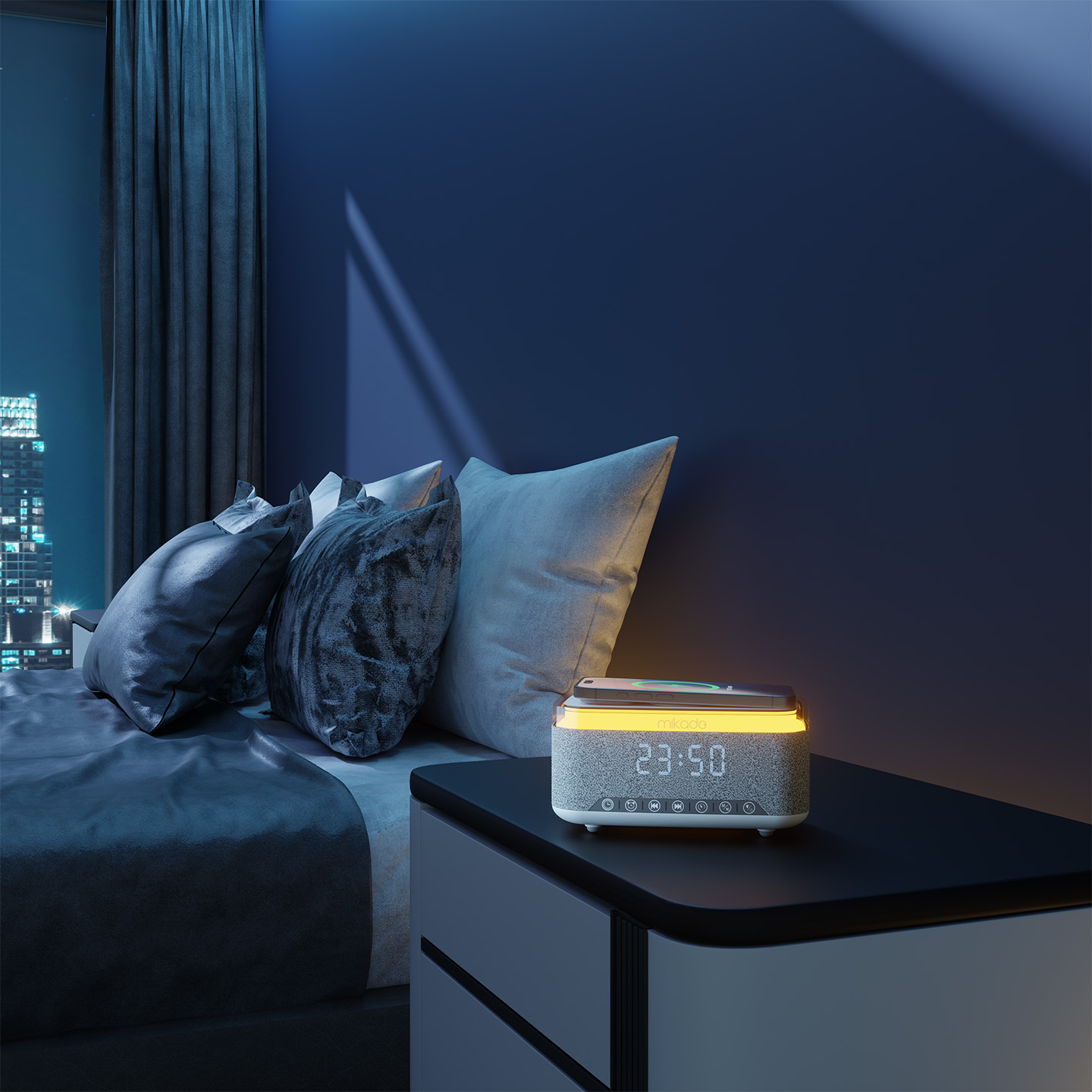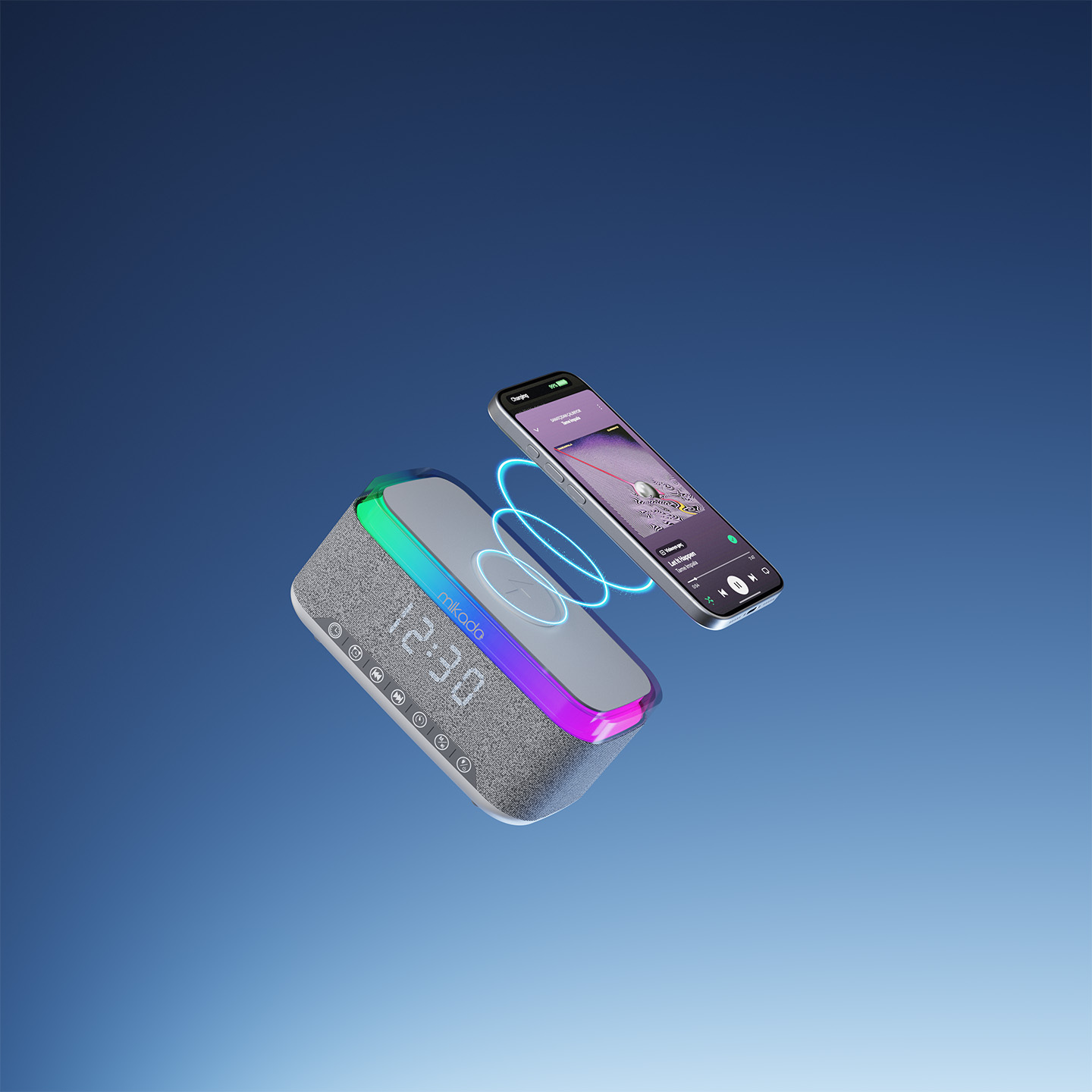 Mikado MD-W9 1200mAh 10W Gri Bluetooth-Usb-Kablosuz Şarj RGB-Gece Lambası Özellikli FM Destekli Alarmlı Speaker