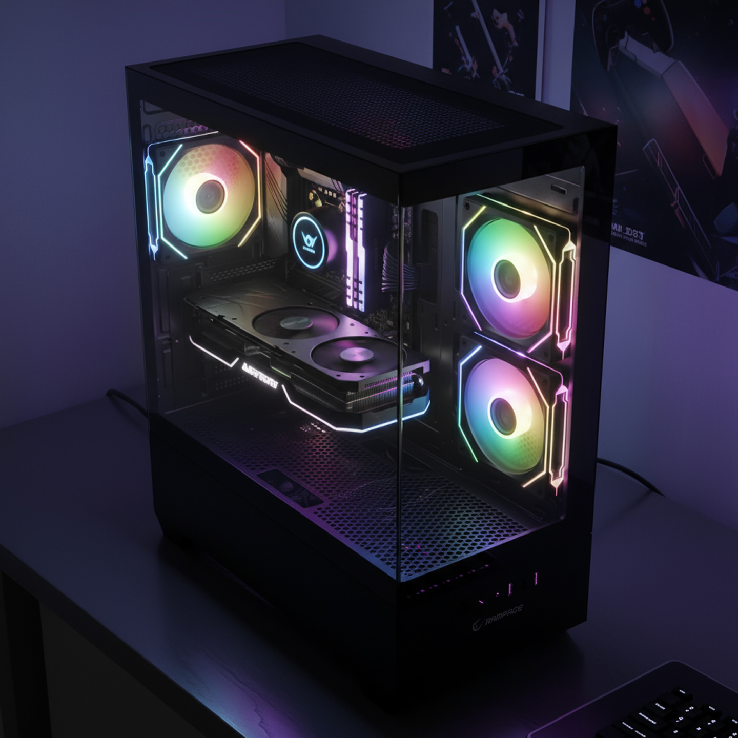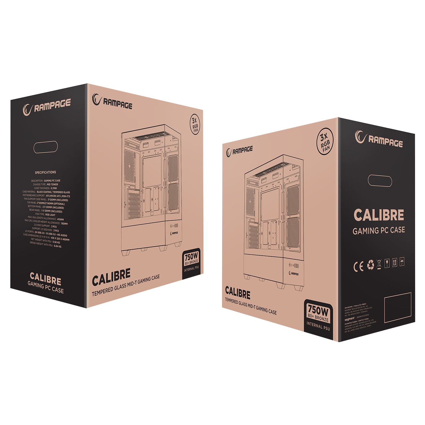 Rampage CALIBRE 3*12cm RGB Fan Siyah 1*Usb 3.0 2*Usb 2.0 Oyuncu Kasası