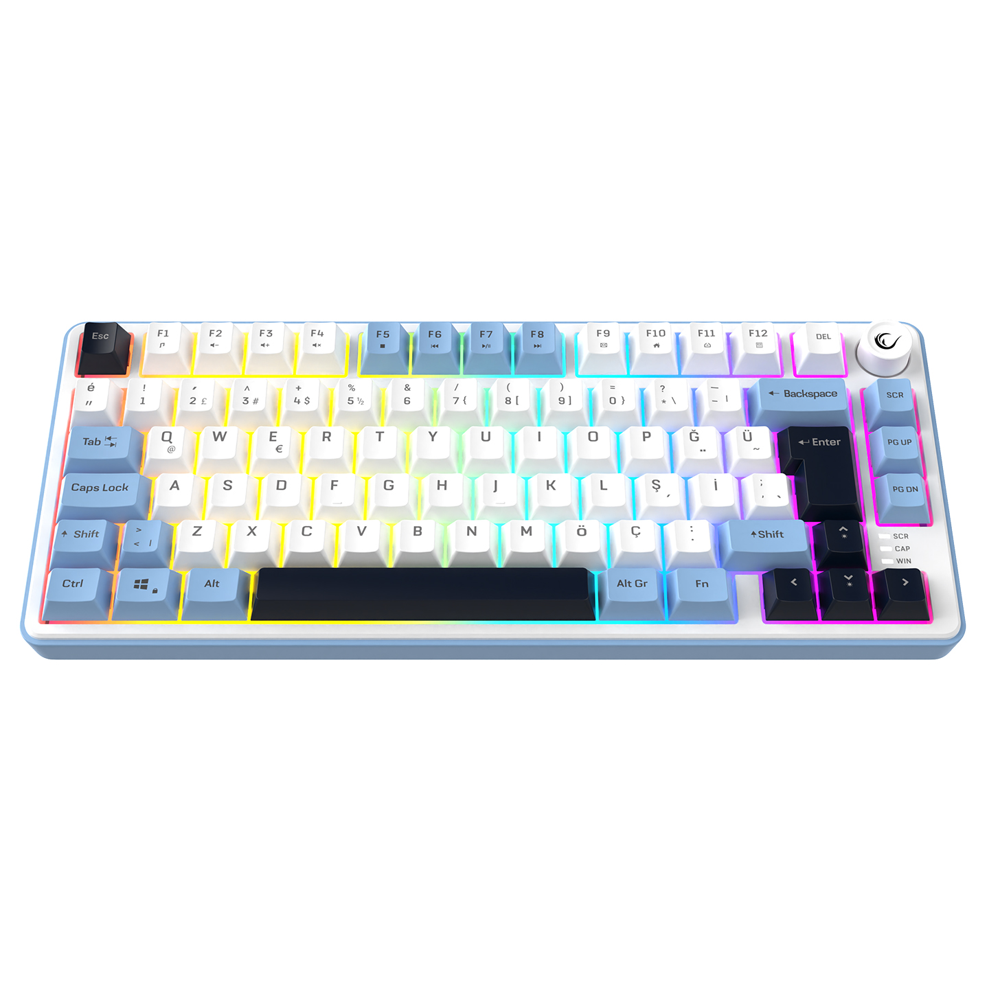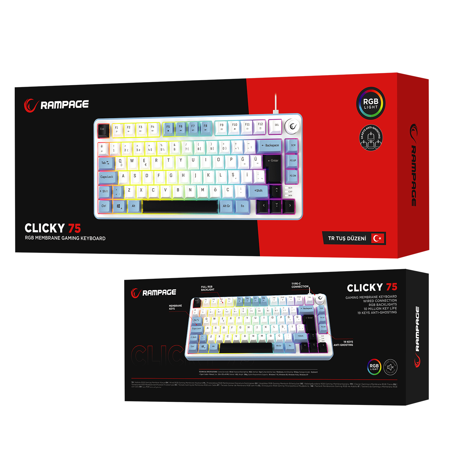 Rampage Clicky 75 Beyaz/Mavi/Siyah Mekanik Hisli Rainbow Q Membrane Oyuncu Klavyesi