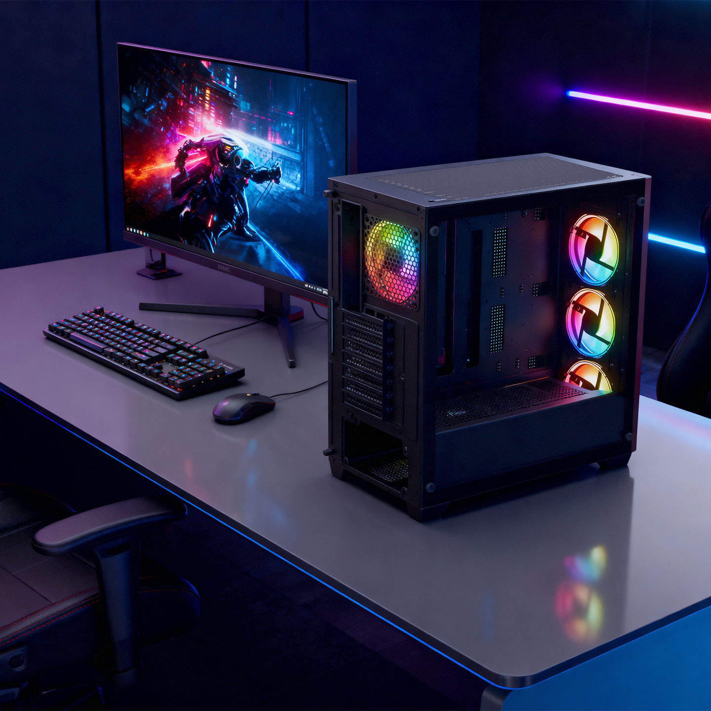 Rampage ELYSIAN MESH 850W 80 Plus Bronze 4*12cm ARGB Fan Temperli Camlı Mid-T Siyah Oyuncu Kasası