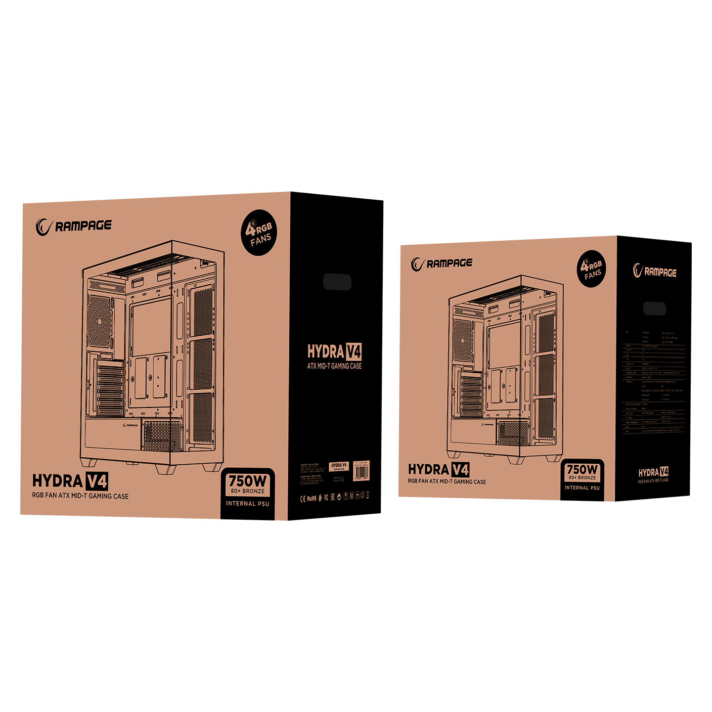 Rampage HYDRA V4 750W 80 Plus Bronze Siyah 4*12cm RGB FAN ATX Mid-T Gaming Oyuncu Kasası