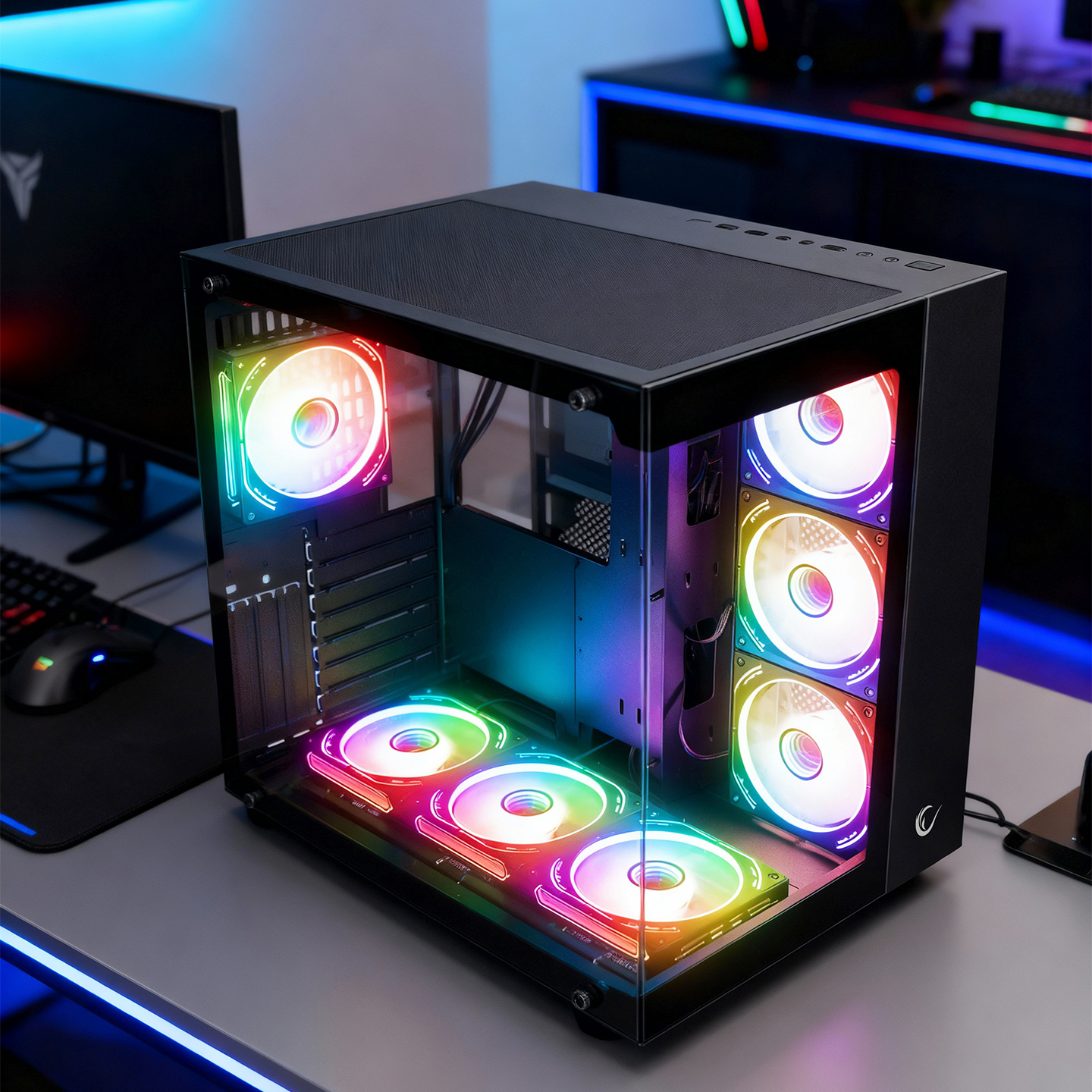 Rampage ICEWAVE PRO Siyah Temperli Camlı 7*12cm ARGB Fan+Kontrolcü Transparan ATX Oyuncu Kasası