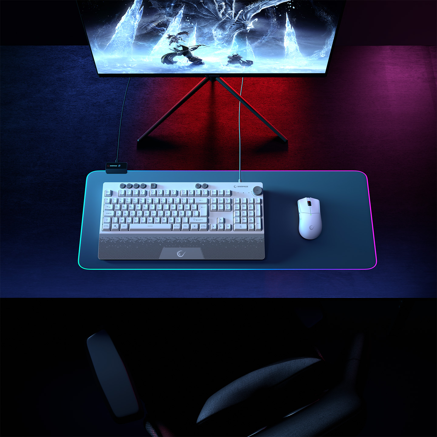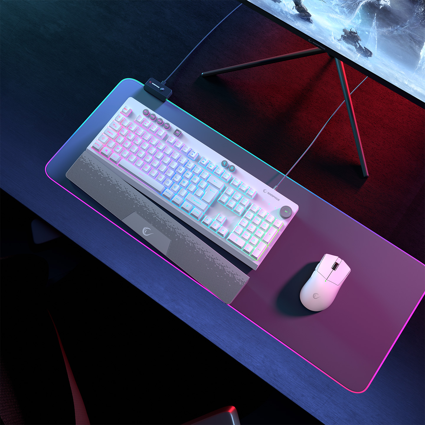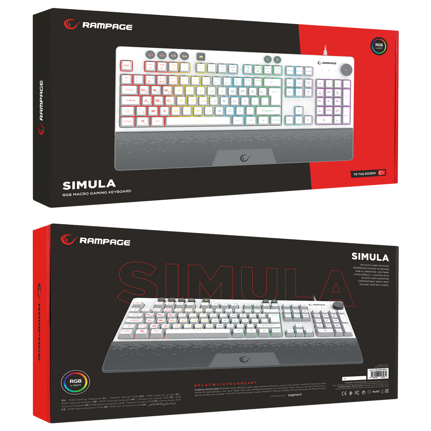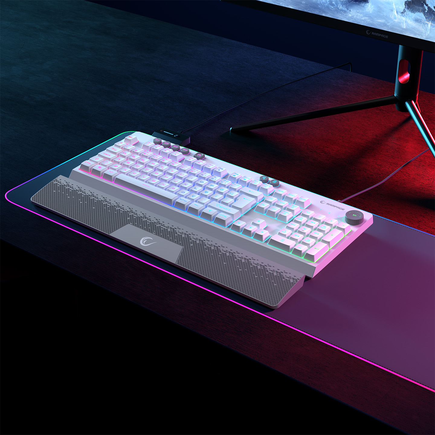 Rampage KB-GX65 SIMULA Beyaz USB RGB Aydınlatmalı 4 Makro Tuşlu Bilek Destekli Gaming Oyuncu Klavyesi