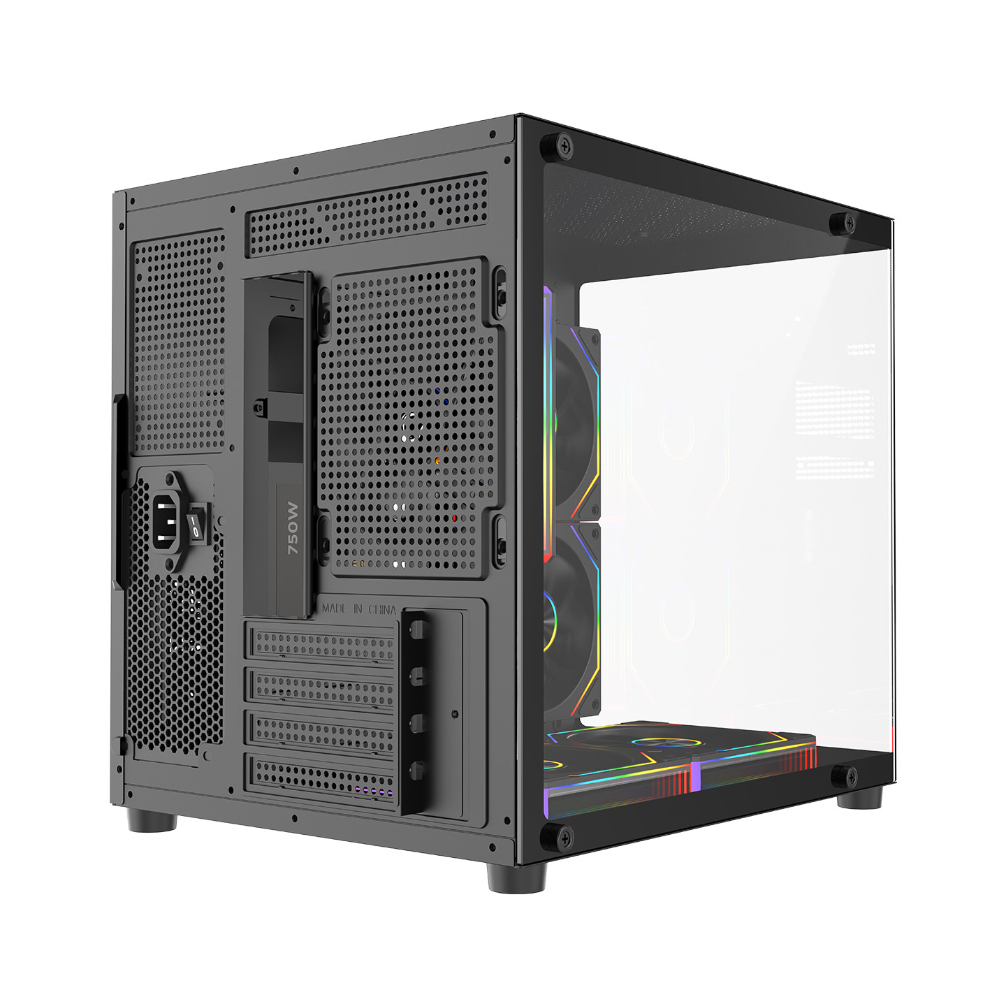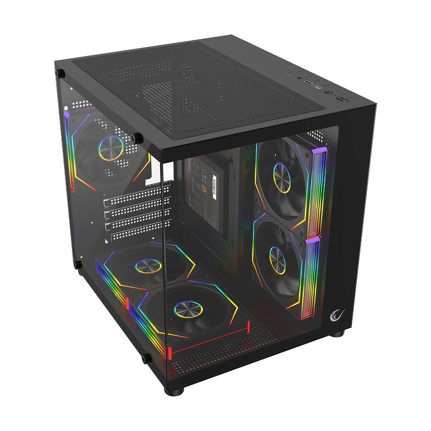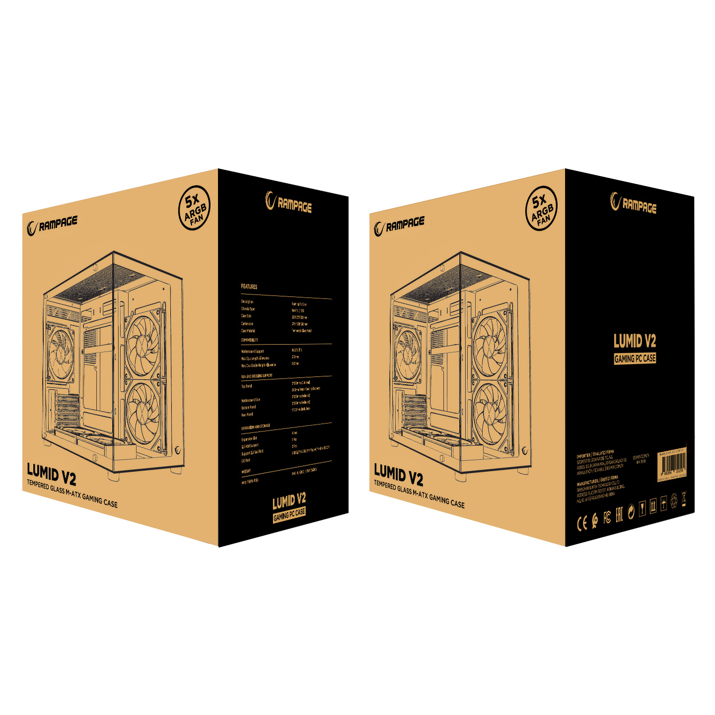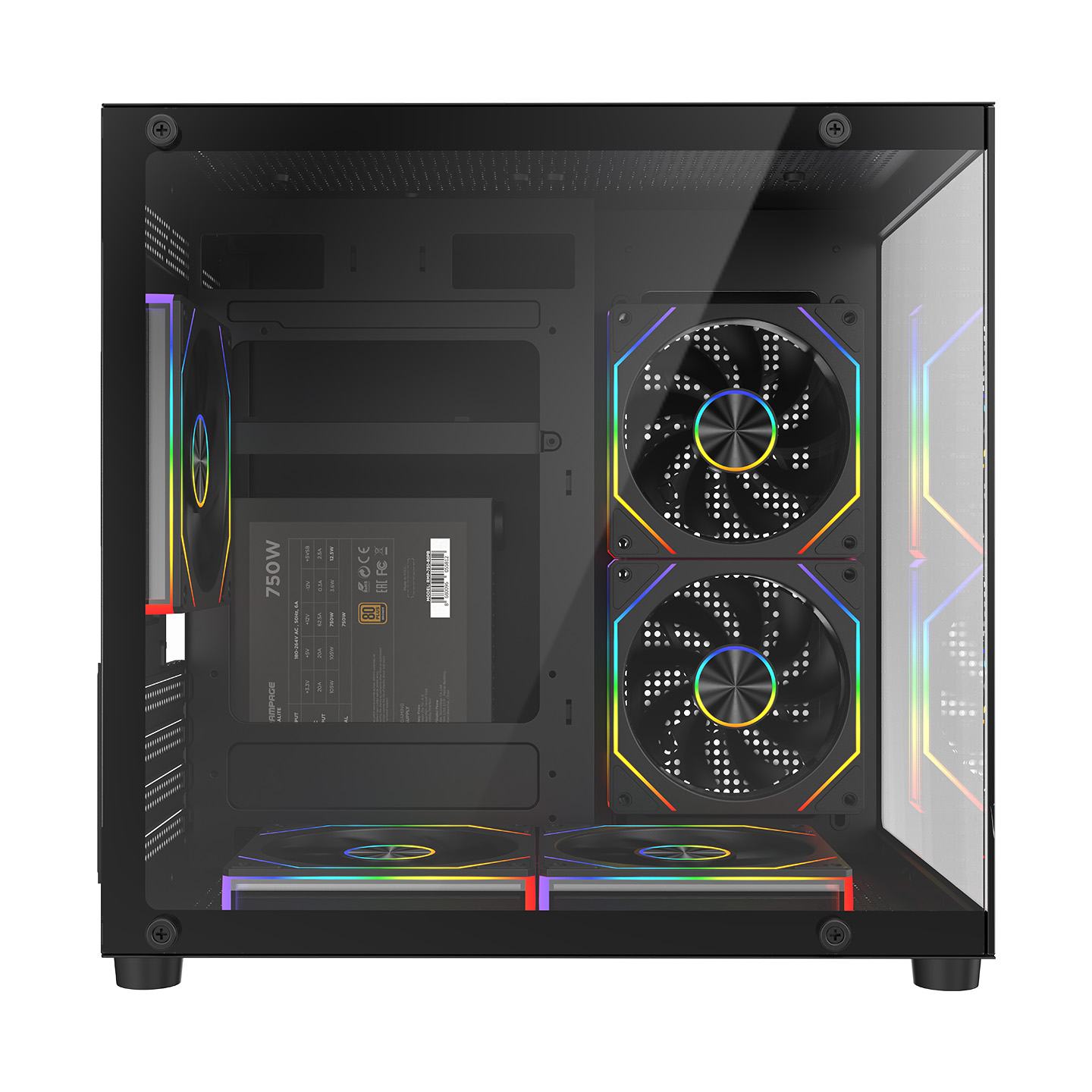 Rampage LUMID V2 750W 80 Plus Bronze M-ATX Temperli Camlı 5*12cm ARGB Fan Siyah Oyuncu Kasası