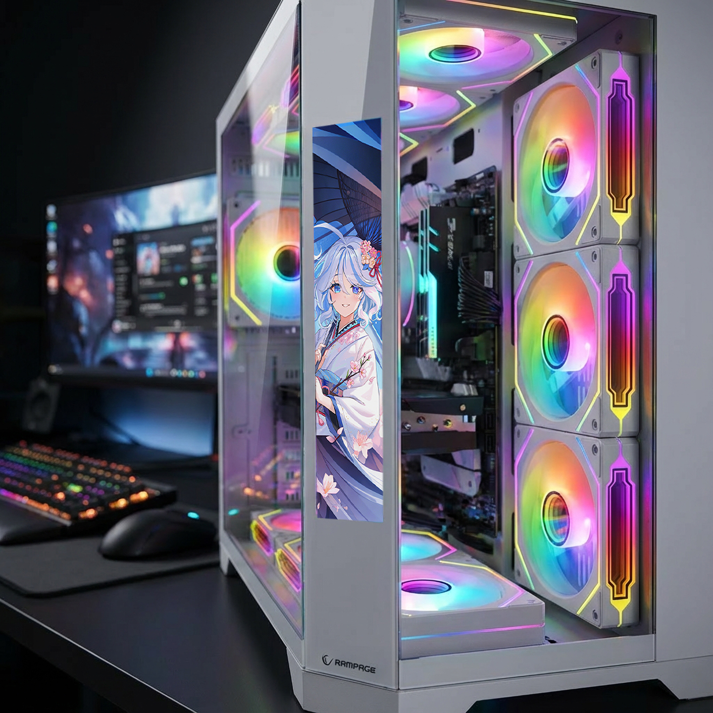 Rampage NOVA 9.16 Lcd Ekranlı Hub+Kumanda Beyaz 7x12cm ARGB Fan+Kumanda Gaming Oyuncu Kasası