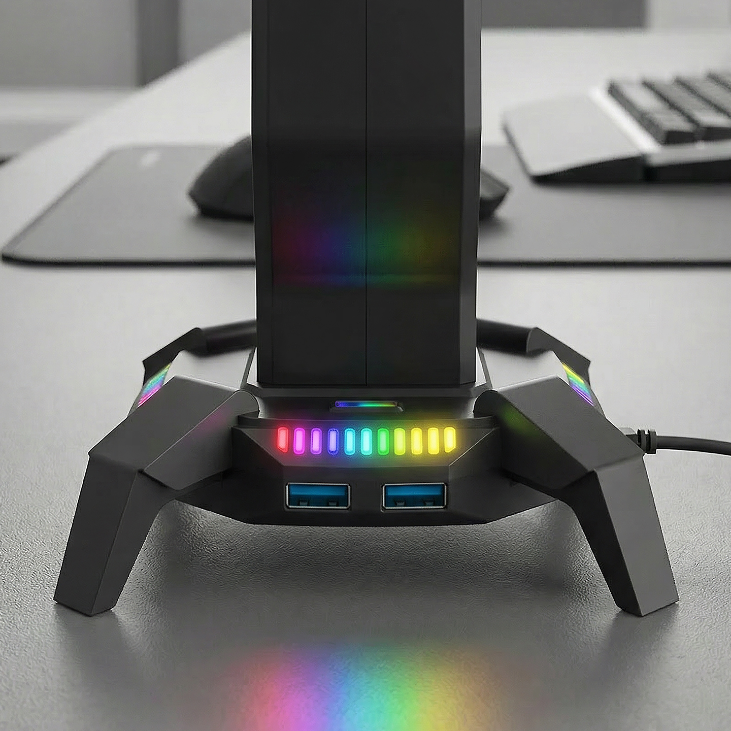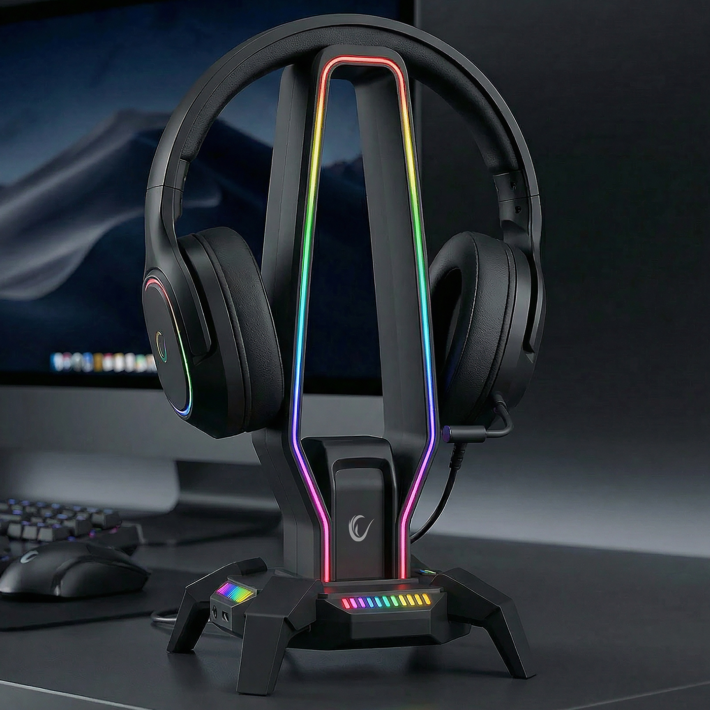 Rampage RM-H27 IGRIS Kulaklık İçin Stand RGB Işıklı 3*USB 1*Type-C Siyah 1*3.5mm Port