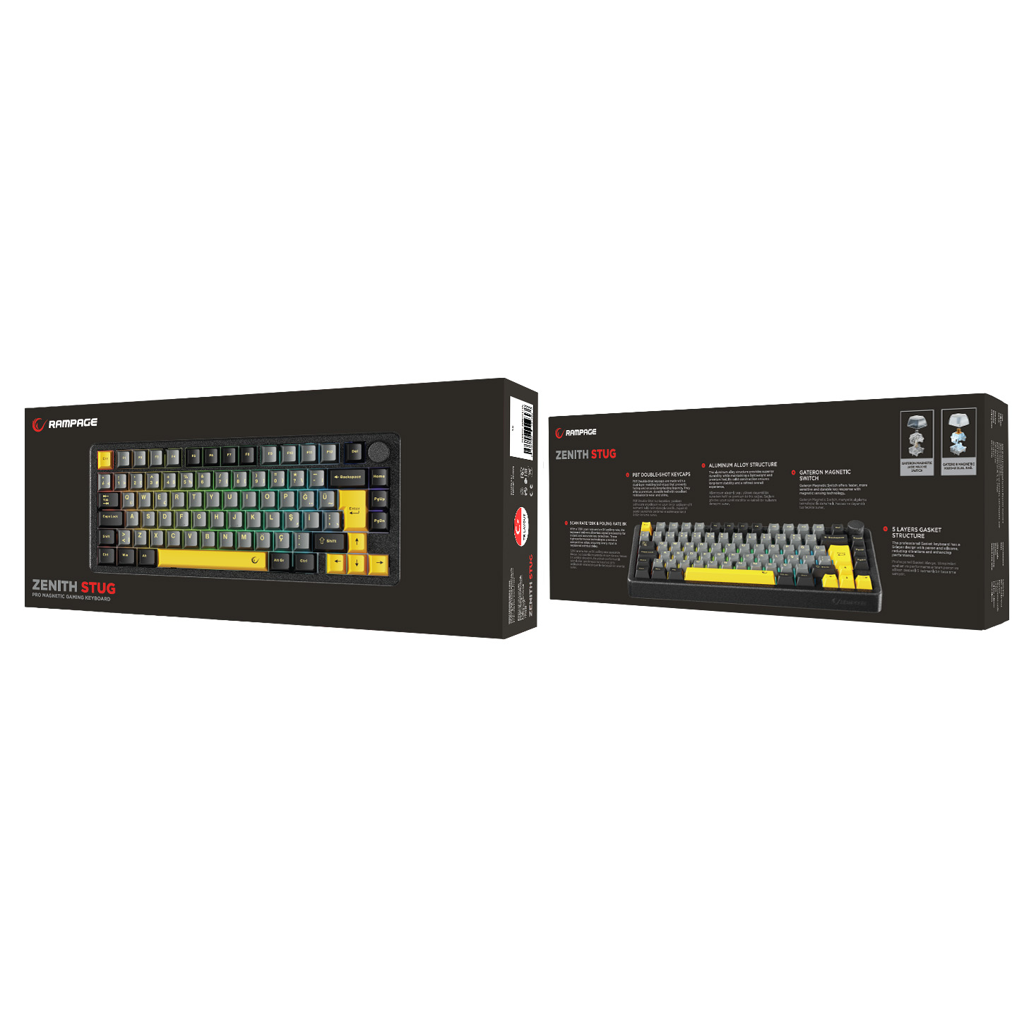 Rampage ZENITH STUG Aluminum Siyah Hot Swap 8000 Hz Gasket Manyetik RGB Rapid Trigger Gateron Switch Q Double Shot PBT K