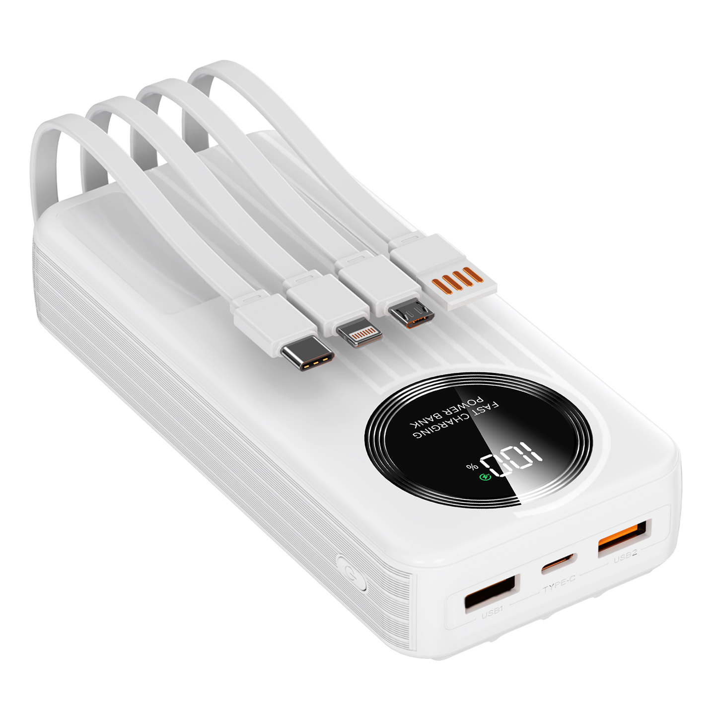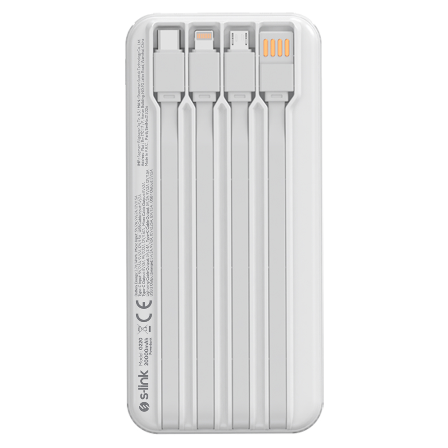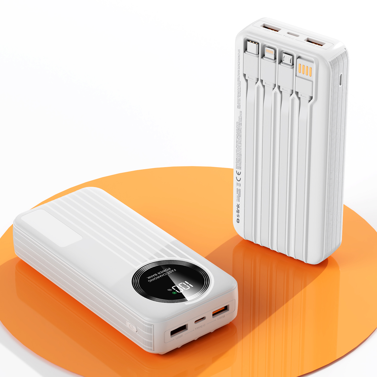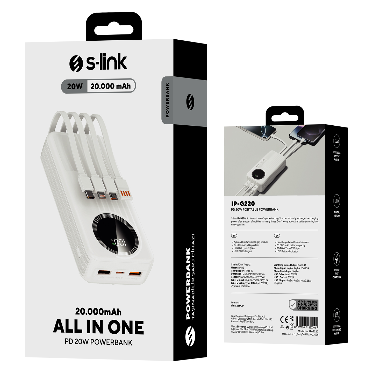 S-link IP-G220 20000mAh PD20W+QC3.0 Dahili Kablolu Beyaz LCD Taşınabilir Pil Şarj Cihazı Powerbank