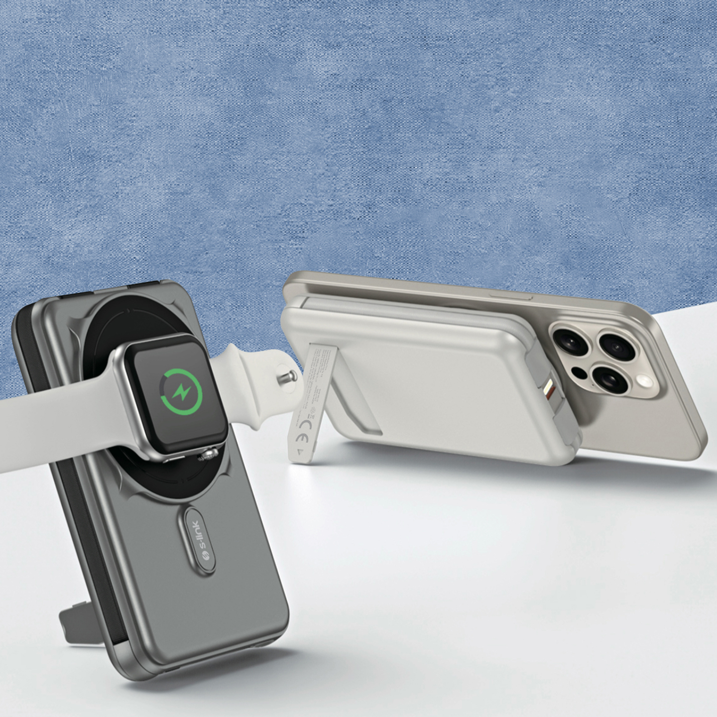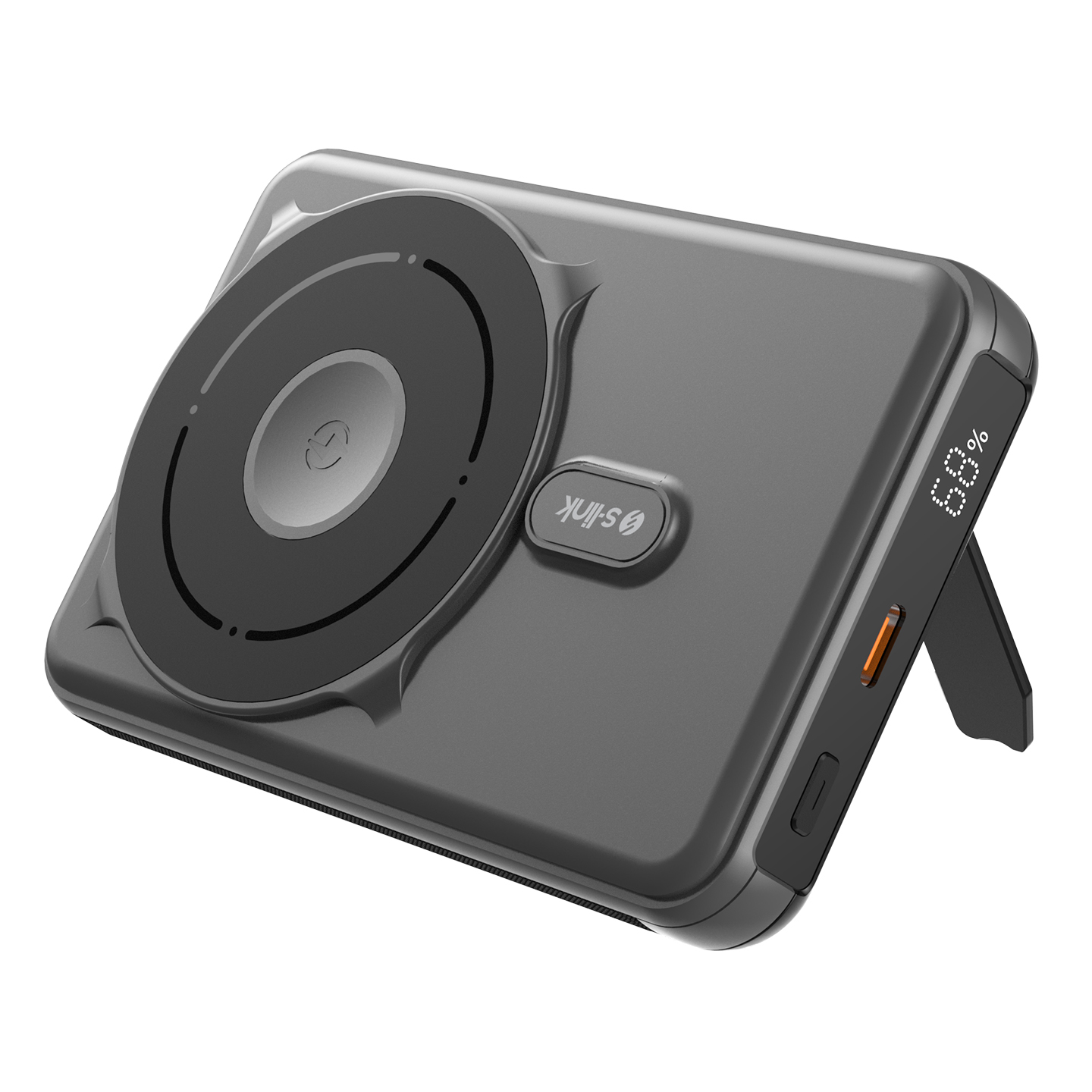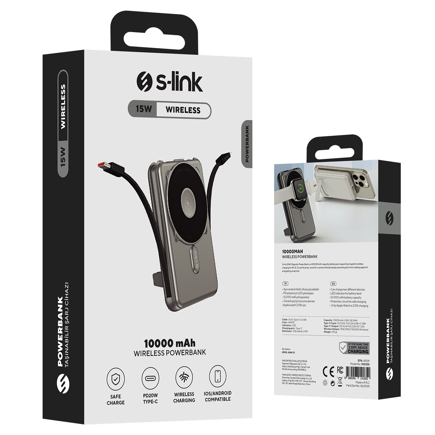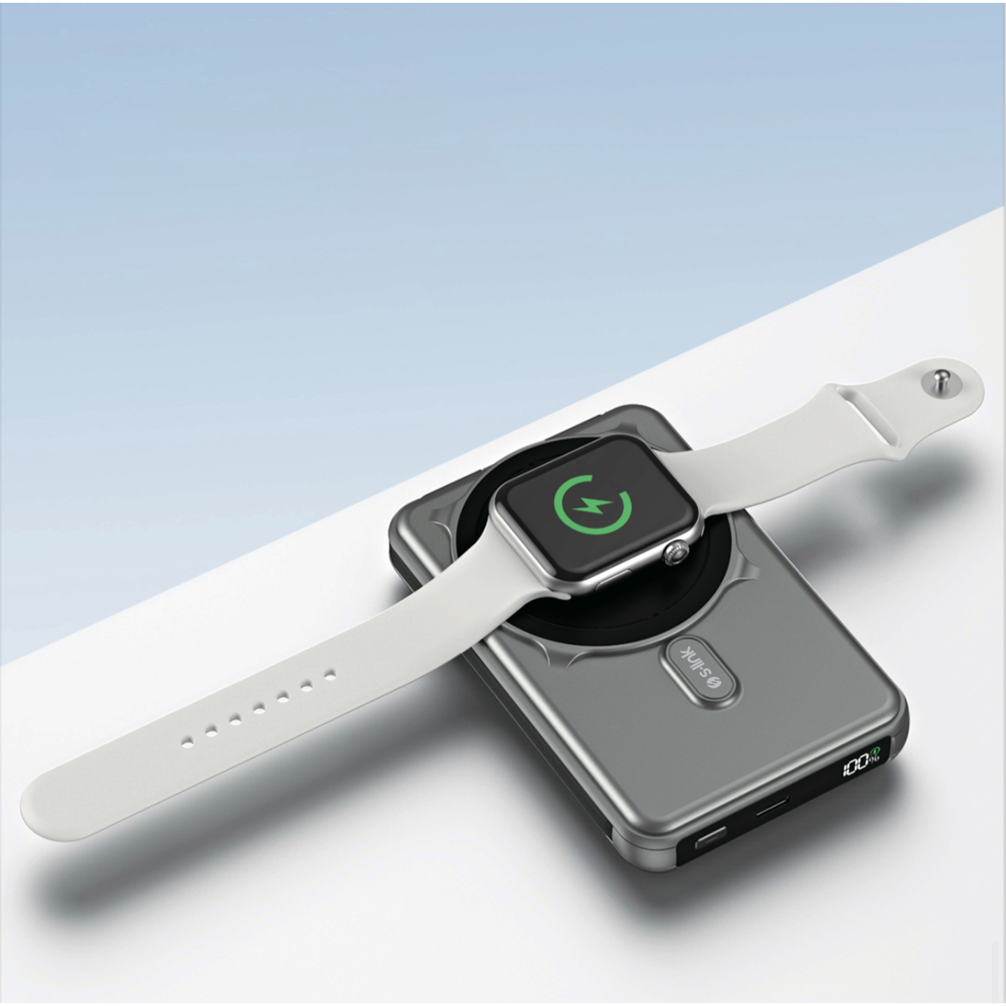 S-link MG120 10000mAh PD20W + QC3.0 18W 15W Magsafe + Watch Gri LCD Taşınabilir Pil Şarj Cihazı Powerbank