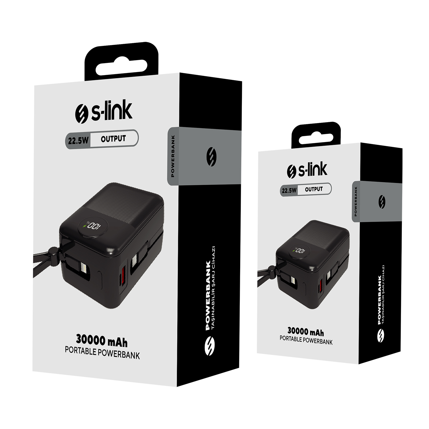 S-link MP130 30000mAh PD22.5W Type-C+Lightning Kablolu Siyah LCD Taşınabilir Pil Şarj Cihazı Powerbank