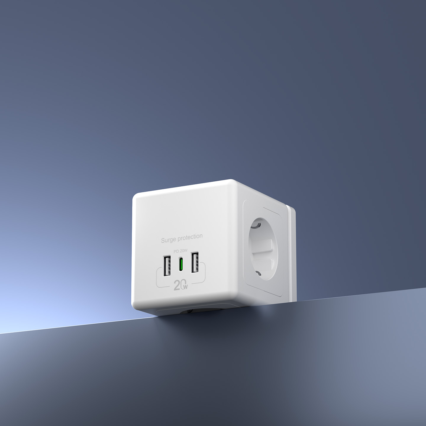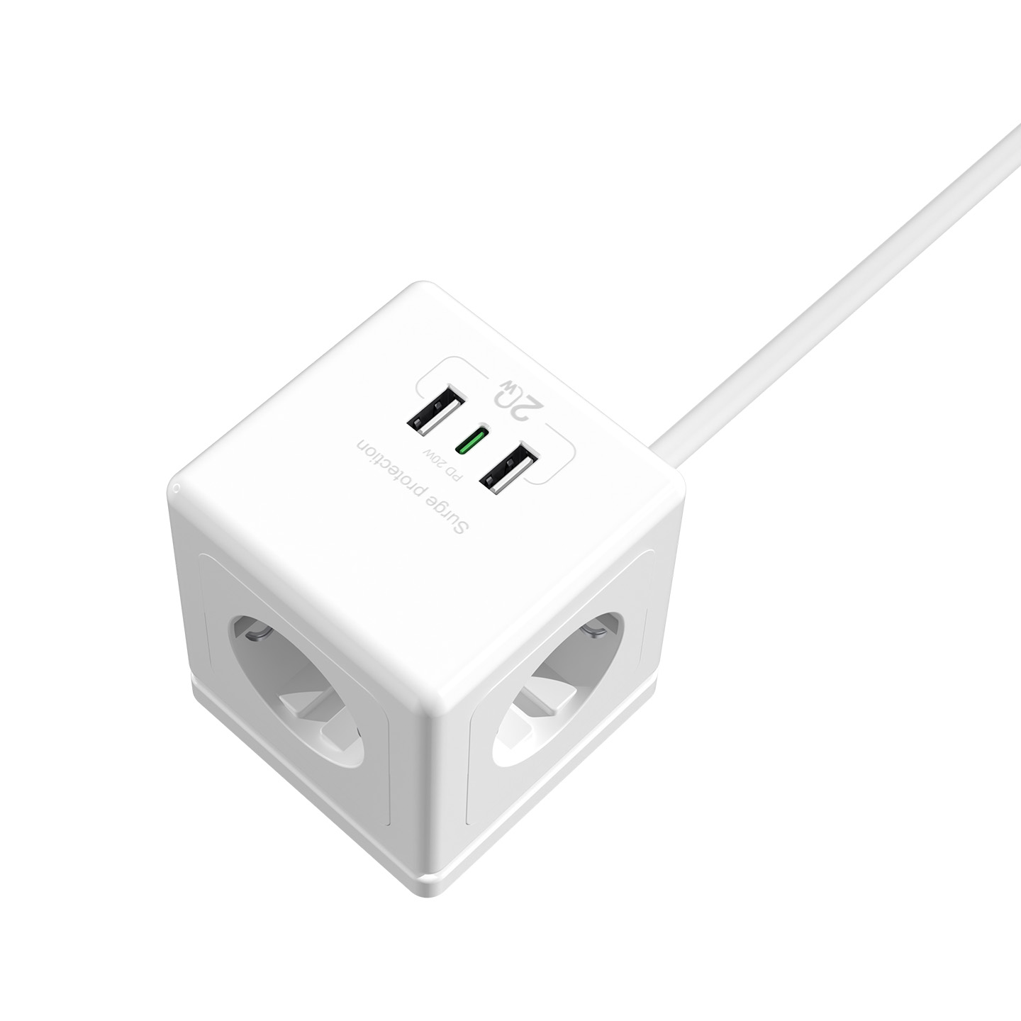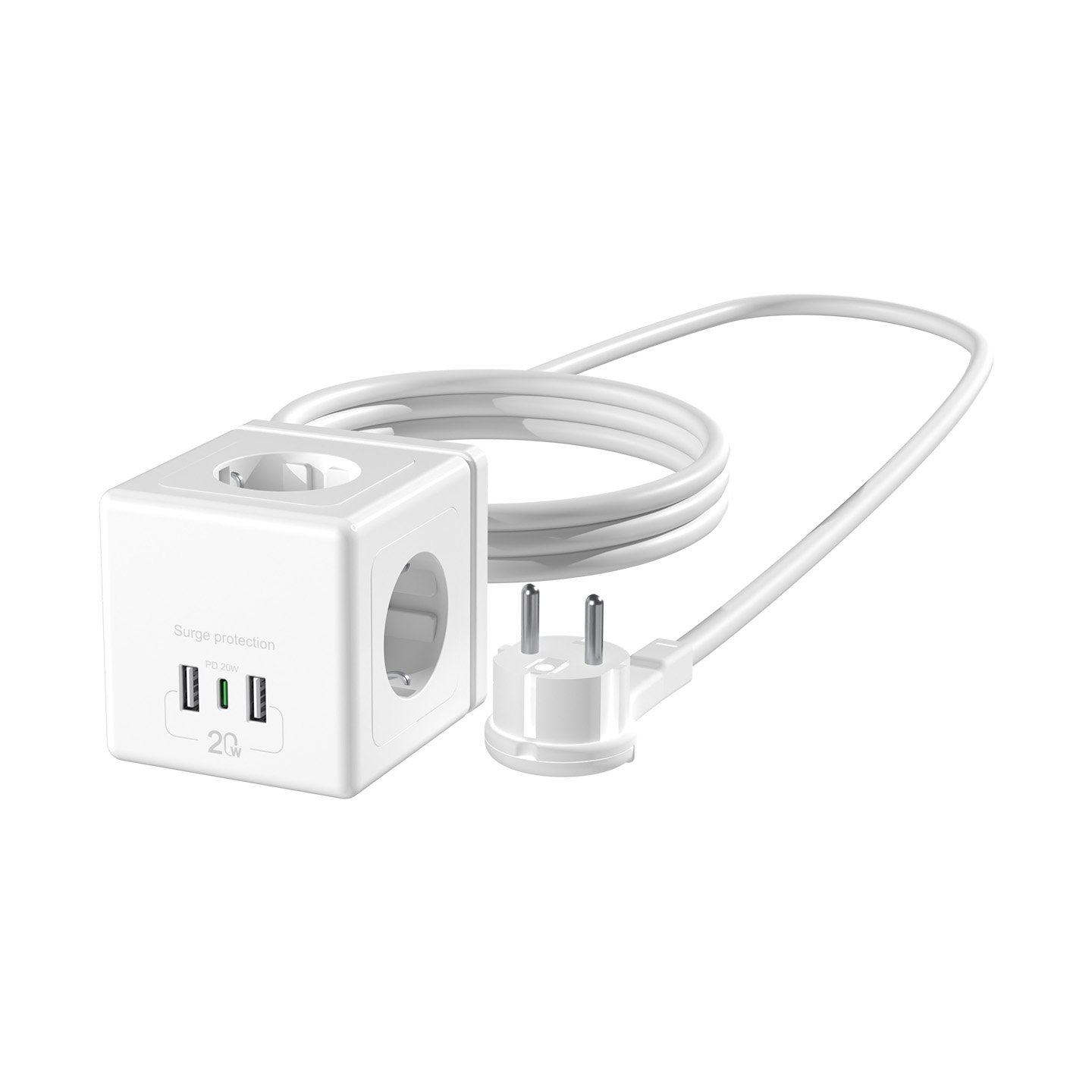S-link PRZ04 4 Soketli 2 USB 1 Type-C PD20 2M 306 Joule Tam Bakır Küp Beyaz Akım Korumalı Priz
