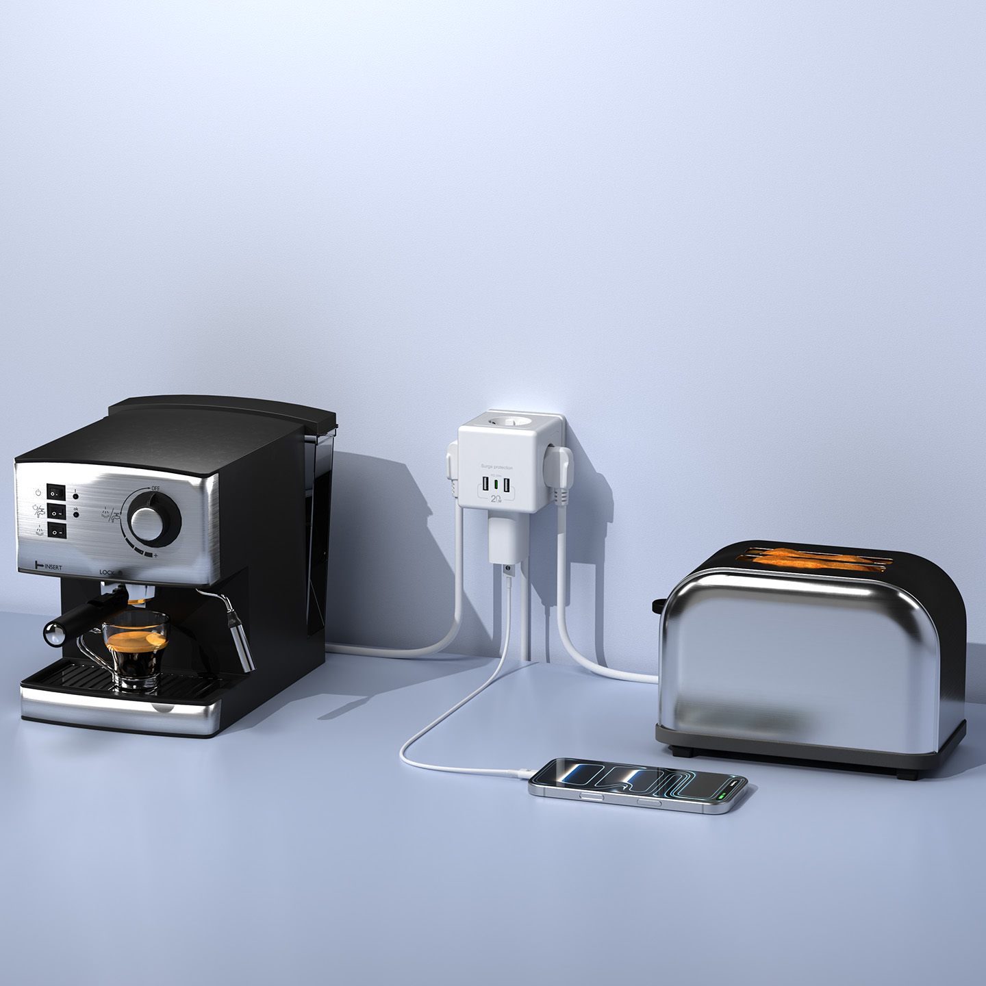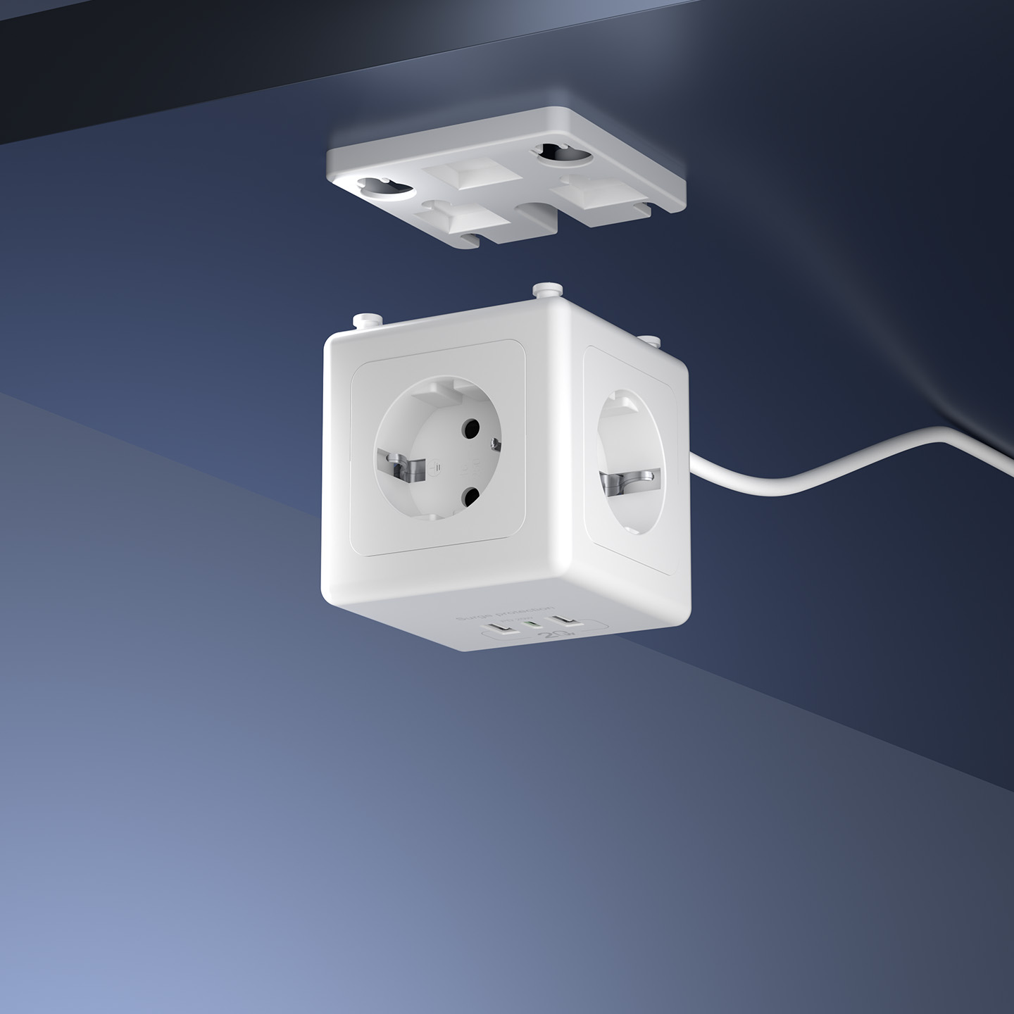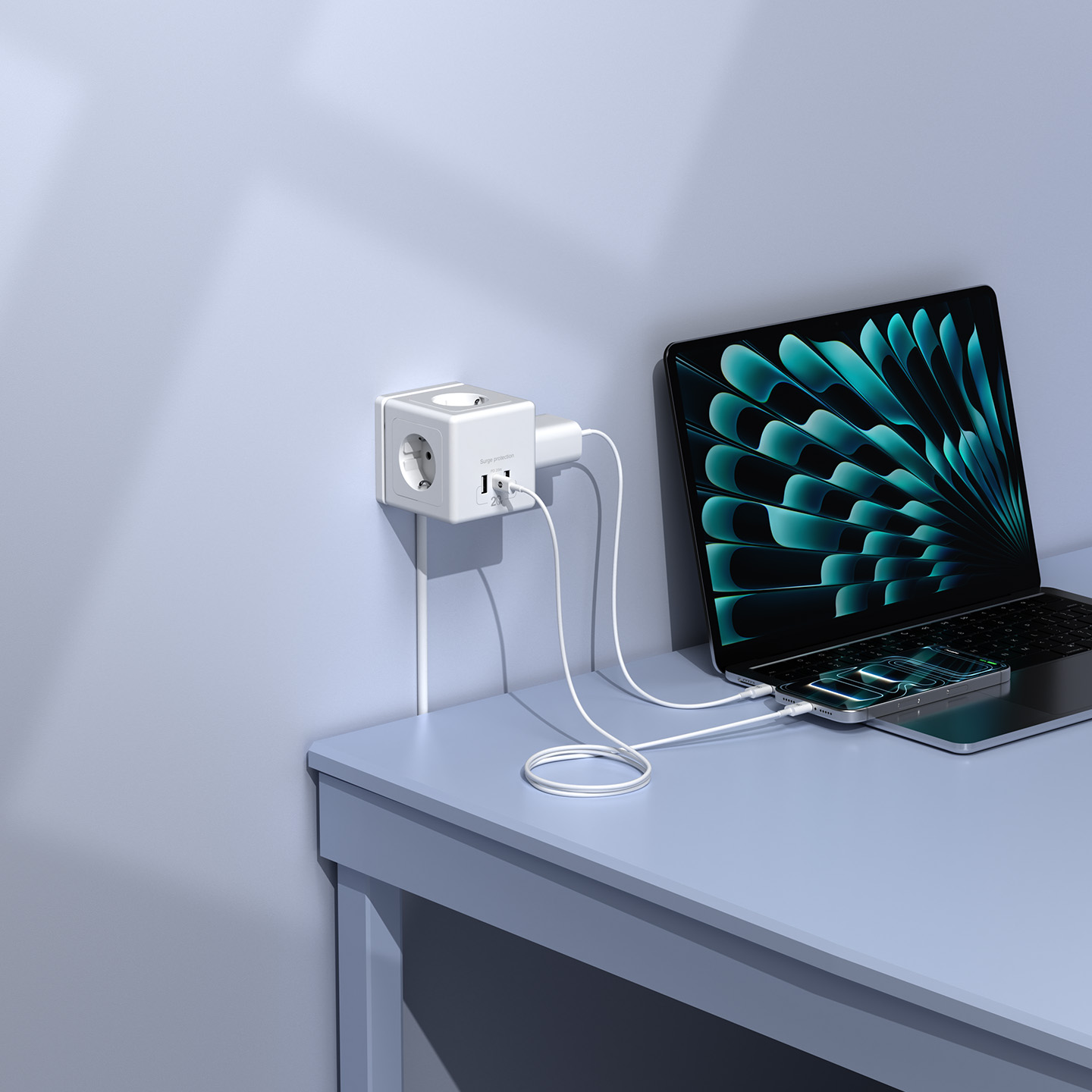 S-link PRZ04 4 Soketli 2 USB 1 Type-C PD20 2M 306 Joule Tam Bakır Küp Beyaz Akım Korumalı Priz