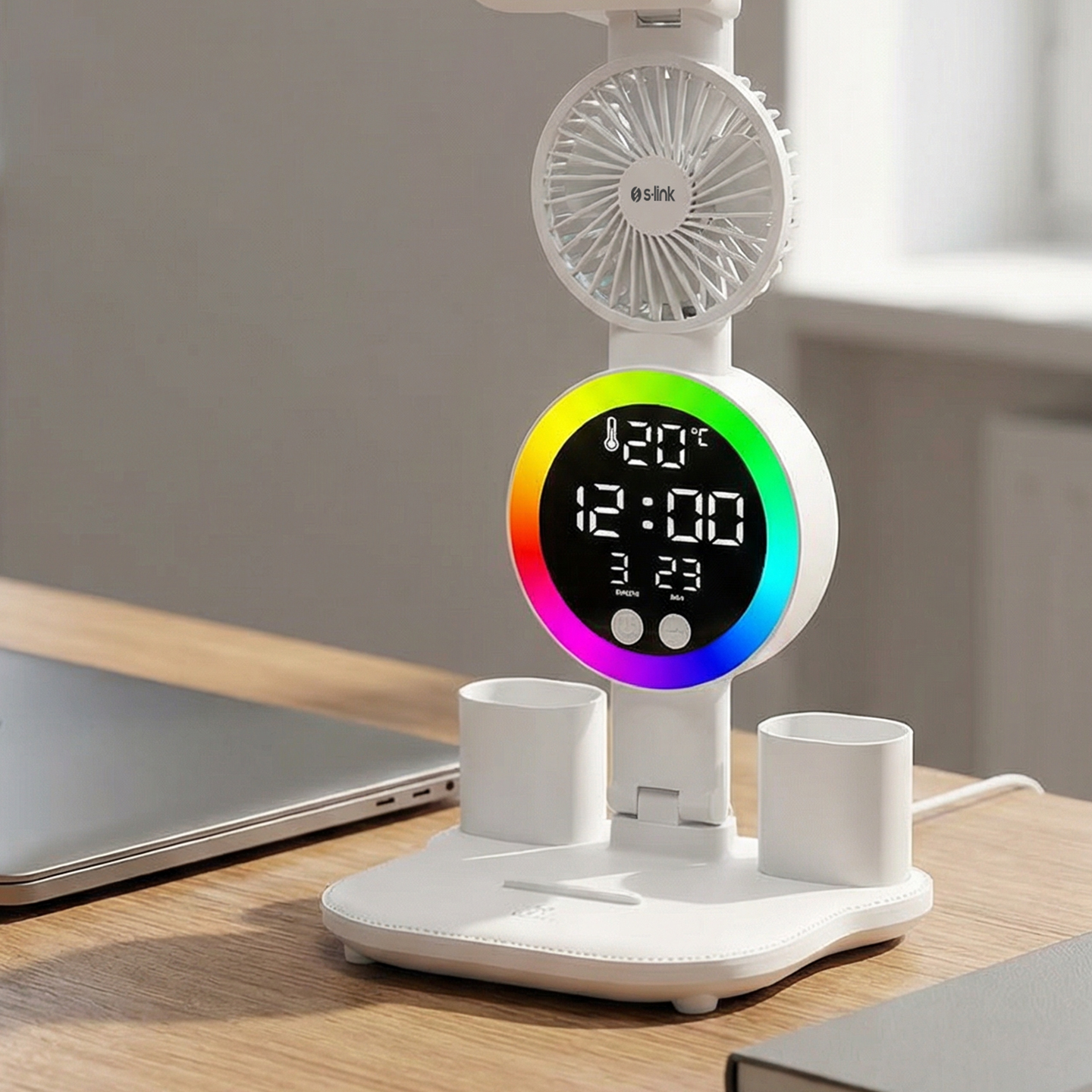 S-link SL-M9070 Glow Beyaz 2 Renk Dokunmatik Led Lamba Saat, Fan, Alarm, Derece Kalemlikli Masa Lambası PRODUCT CODE 42433 BARKODE 8680096147821 Overview Specifications To download the driver CLICK
