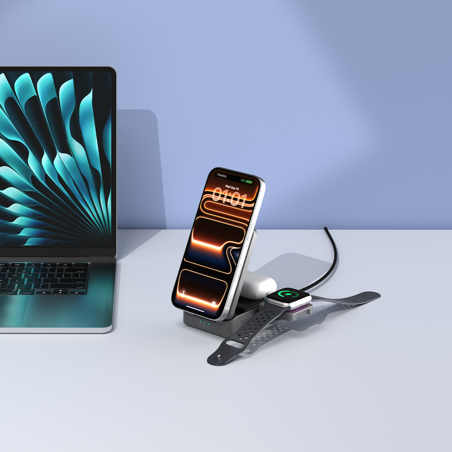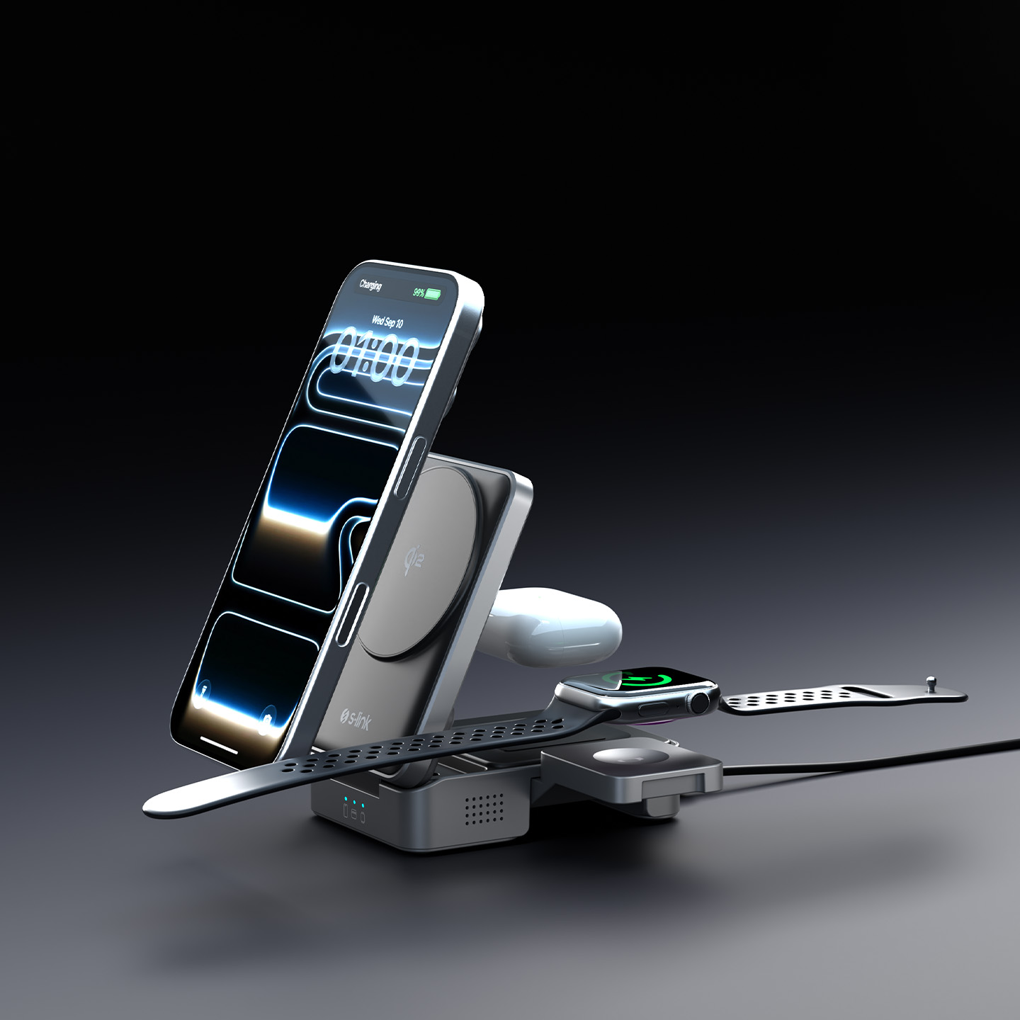 S-link SW-CWF116 Siyah Telefon Kulaklık Akıllı Saat 15W 3 in 1 Magsafe IQ2 Kablosuz Şarj Cihazı