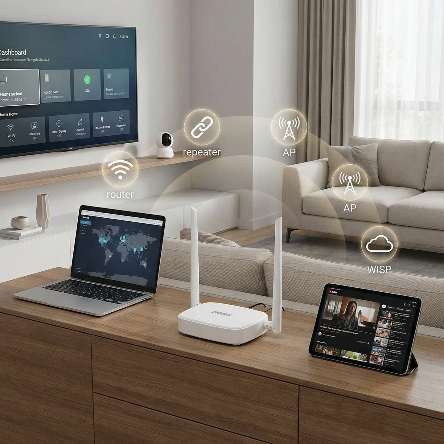 Everest EWR-301 Kablosuz-N WPS + WISP+WDS 300 Mbps Repeater+Access Point+Bridge Kablosuz Router ; Sinyalinizi daima maksimum düzeyde dağıtır. Çevresel etmenler sinyal kalitesini azaltır. Ana modem ile cihazlarınızın arasında ki mesafenin uzun olduğu durumlarda EWR-301 ile gelen kablolu ve kabosuz sinyali yakalayıp hem kablolu hem kablosuz olarak daha uzak mesafelere daha kaliteli ve daha hızlı bir şekilde dağıtmanıza olanak sağlar.