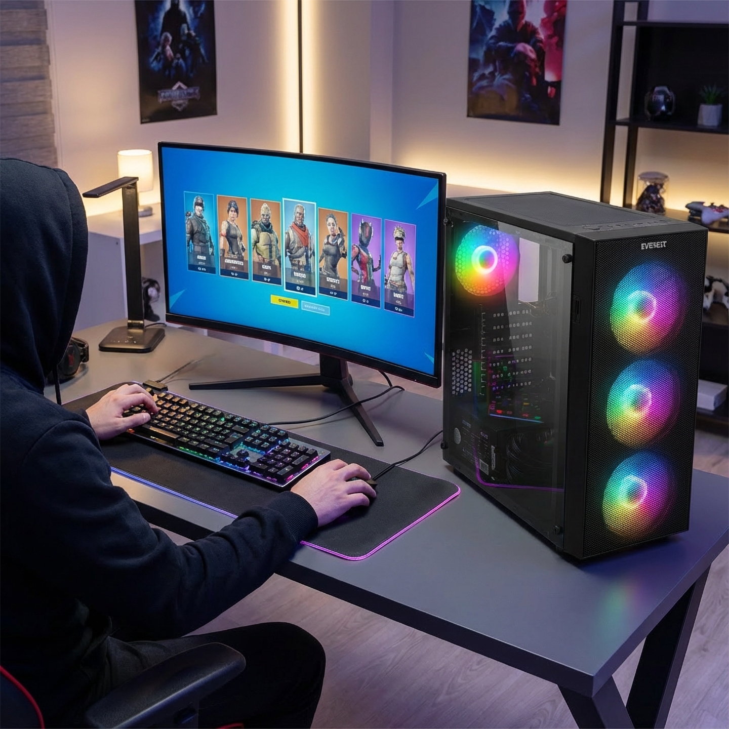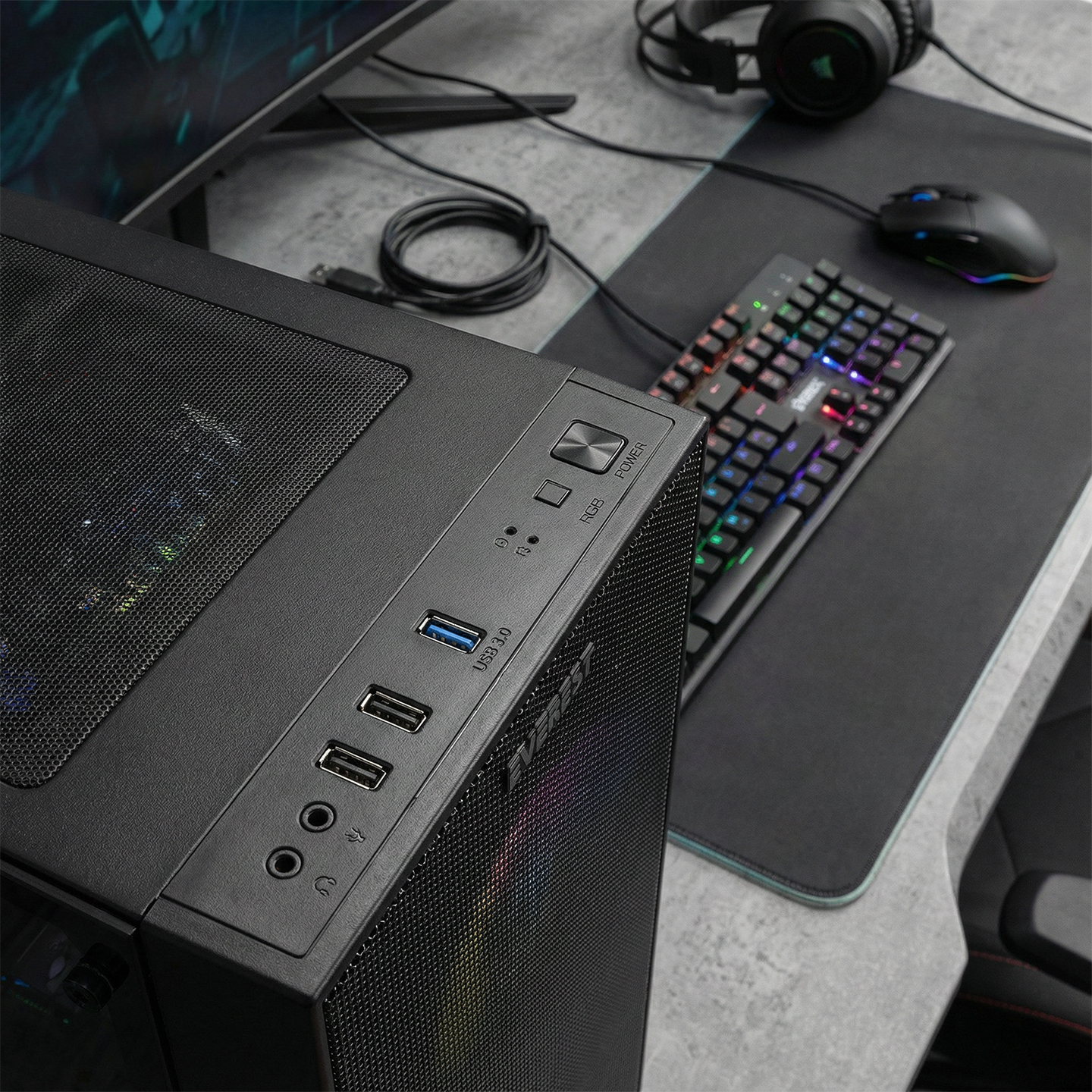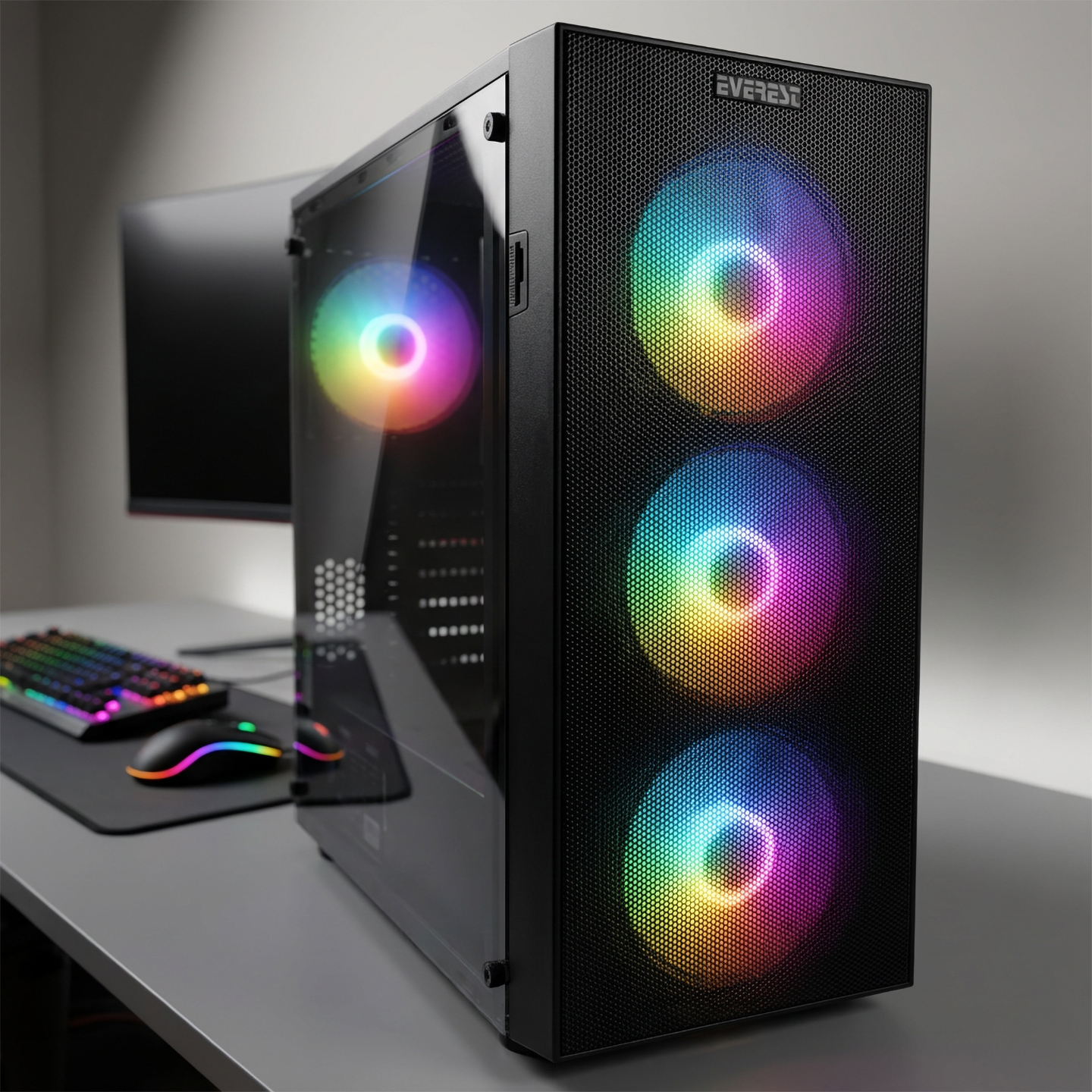 Everest FACED V3 Mesh 500W Temperli Camlı 4x12cm Sabit Rainbow Fanlı ATX Mid-T Gaming Oyuncu Kasası