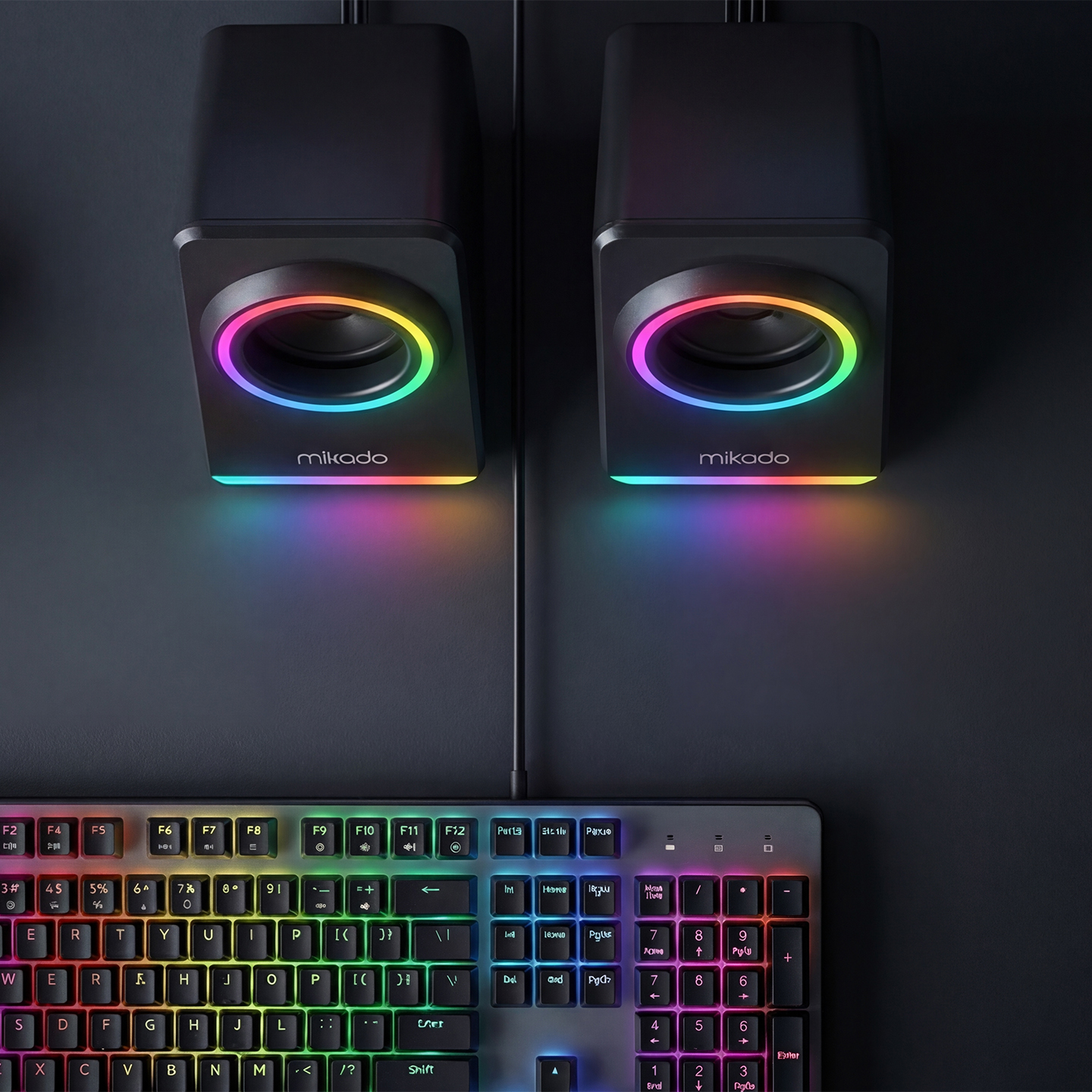 Mikado MD-182 2.0 3W*2 Siyah RGB Aydınlatmalı USB + 3.5mm USB 5V Speaker Hoparlör