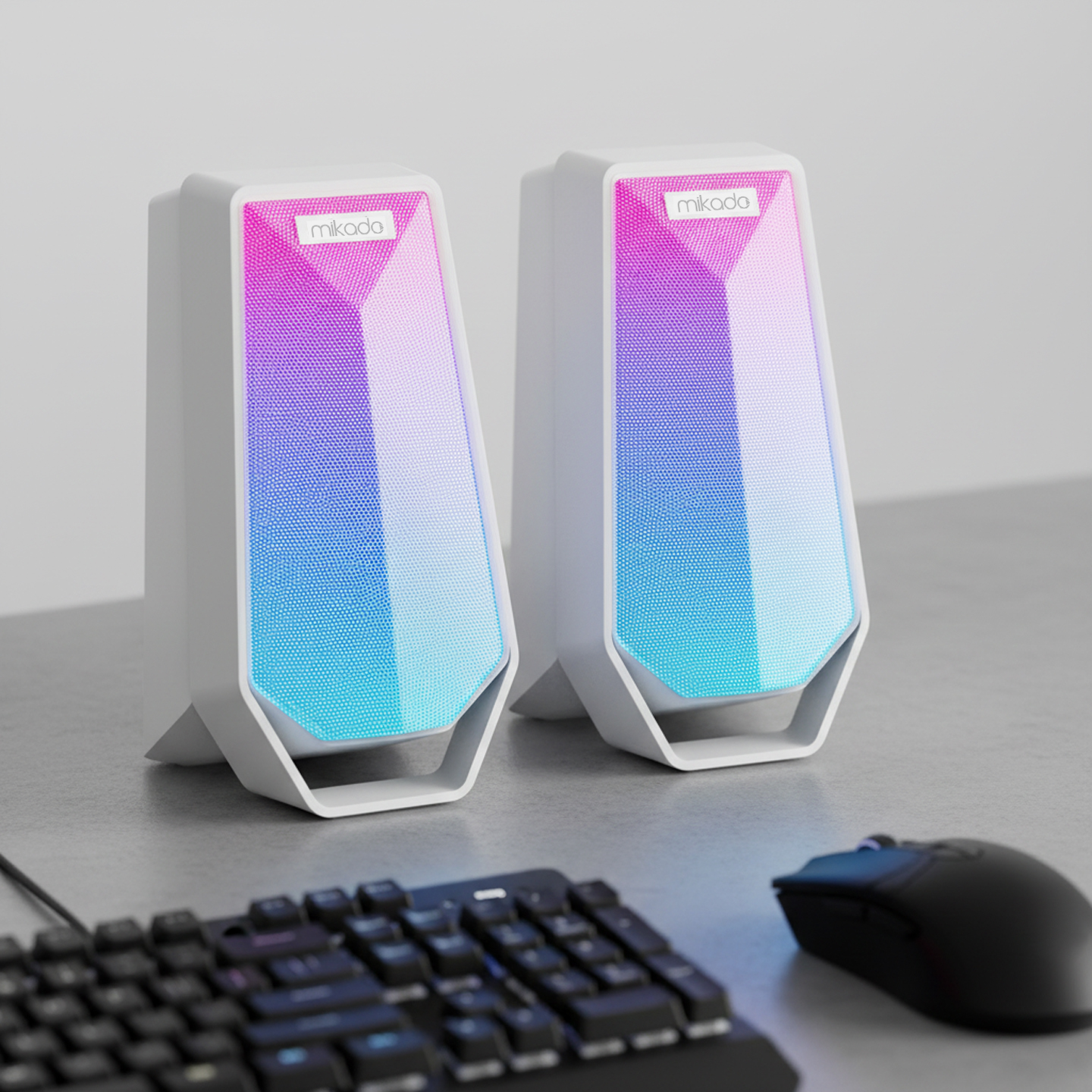 Mikado MD-188 2.0 5W*2 Bluetooth Beyaz RGB Aydınlatmalı + USB Kablo USB 5V Speaker Hoparlör