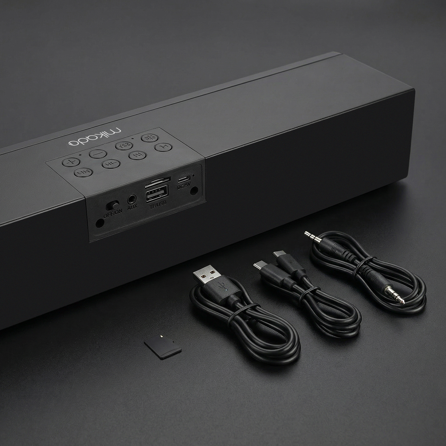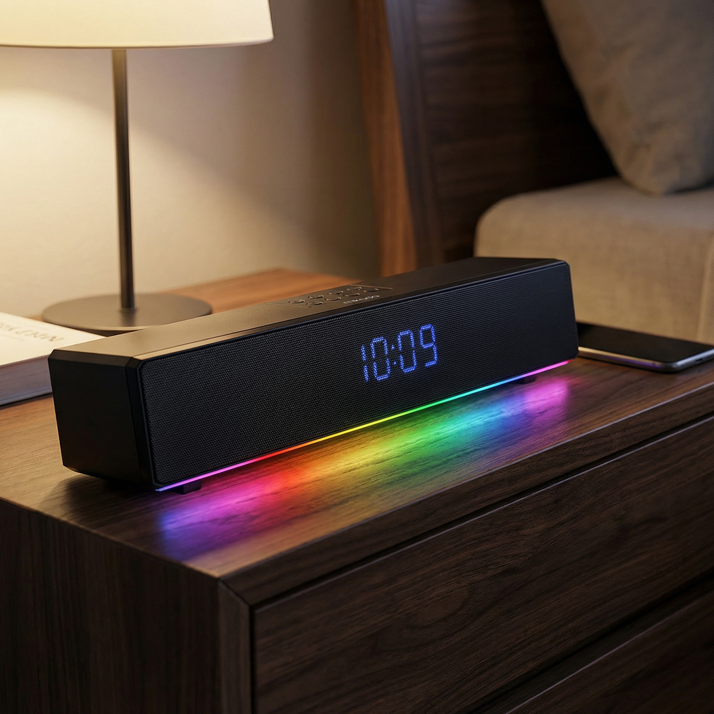 Mikado MD-SBT27 Siyah 10W 2400mAh BT,RGB,Alarm,Clock,TF Card Type-C,USB Soundbar Speaker