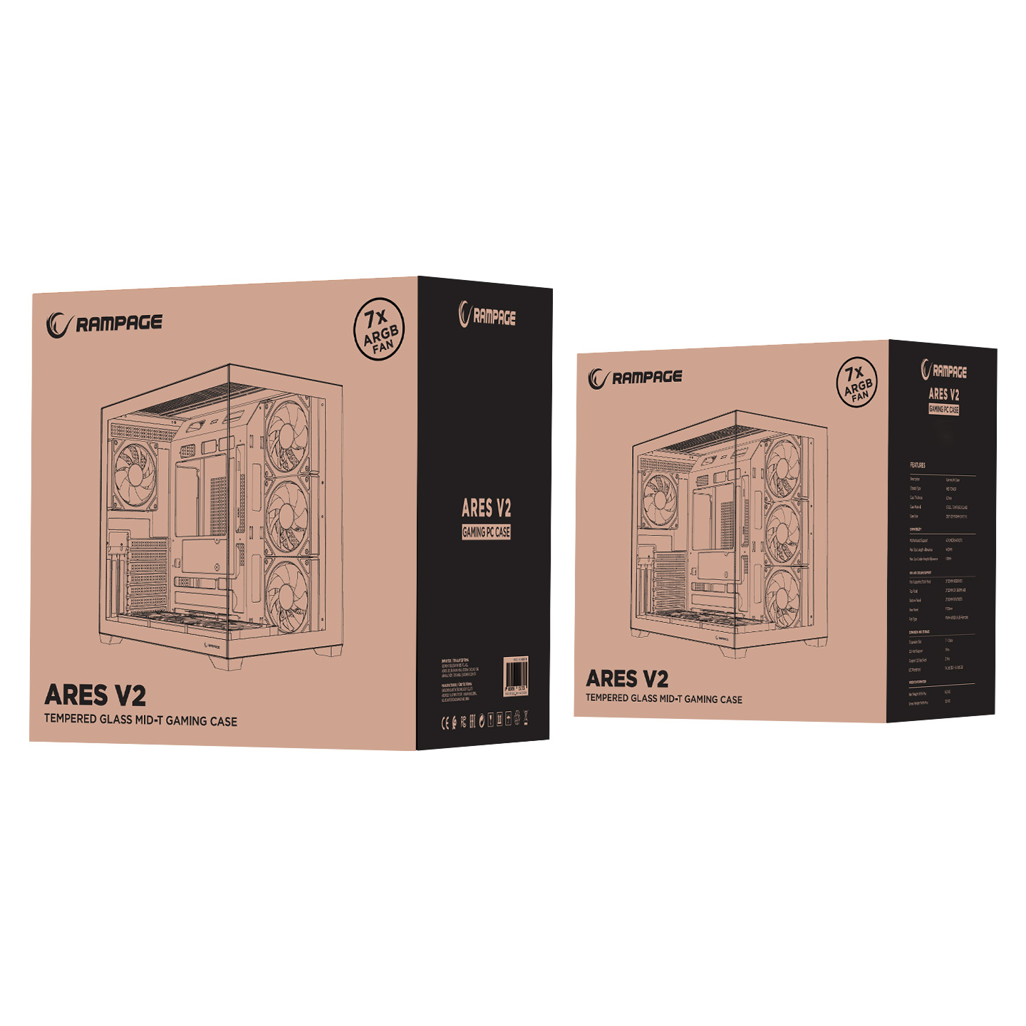 Rampage ARES V2 Temperli Camlı Siyah 7*12cm ARGB Pwm Fan + Kumanda ATX Mid-T Gaming Oyuncu Kasası
