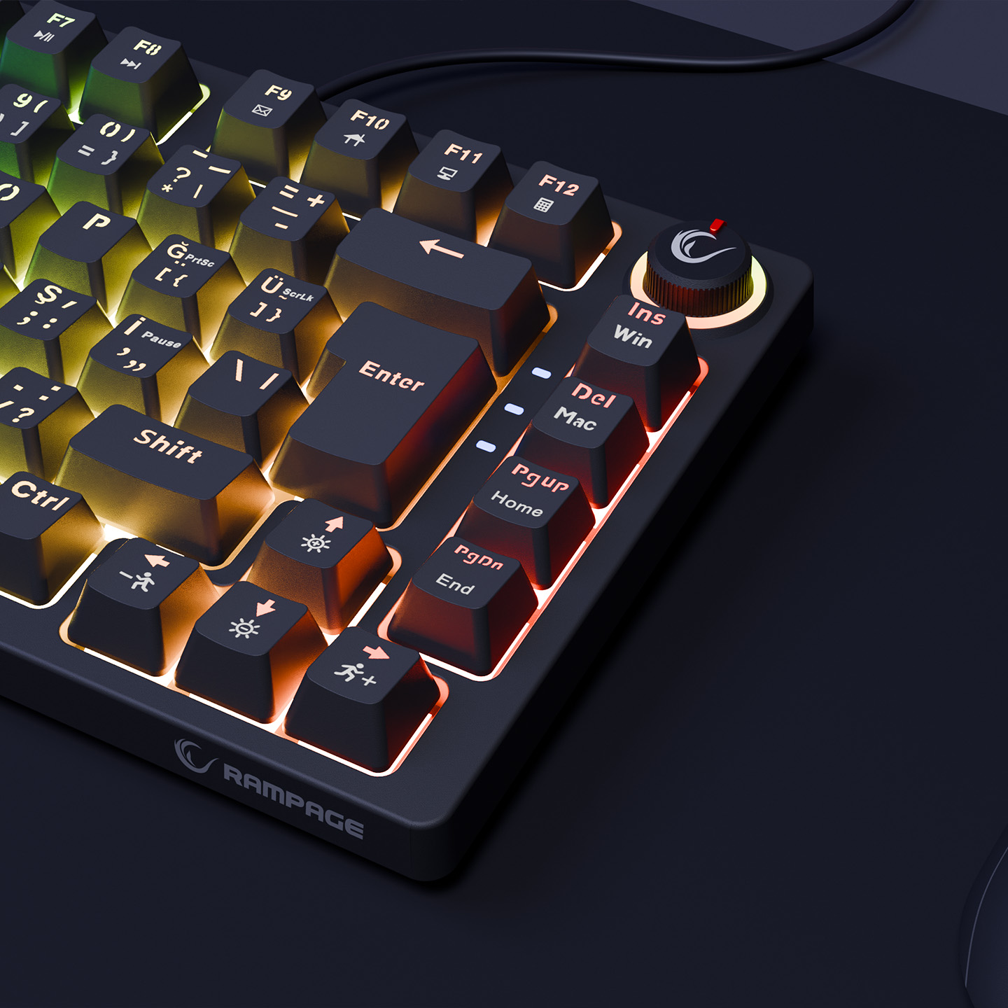Rampage ENIGMA 75 Siyah USB RGB Aydınlatmalı Red Switch Tam Türkçe 1800 Kompakt Dizilim Gaming Mekanik Klavye