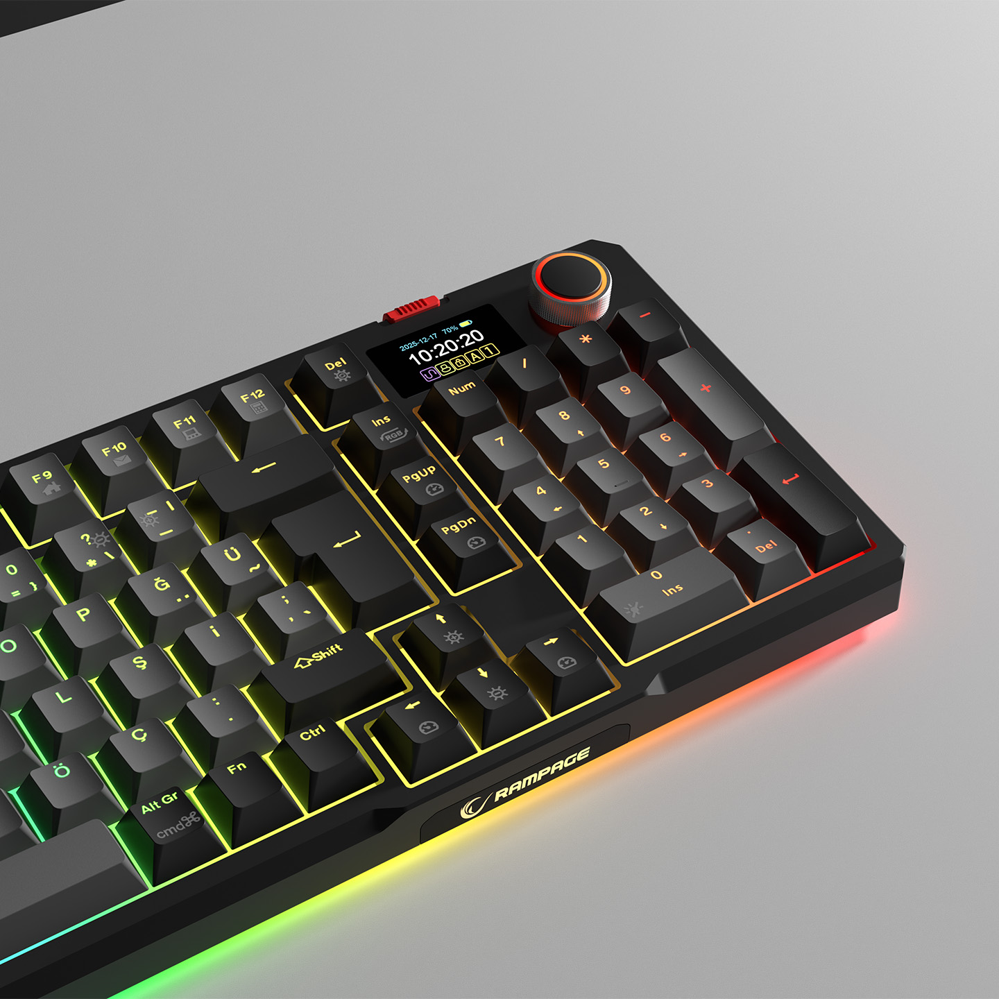 Rampage LOYAL Pro Gri/Siyah 3 BT + 2.4 IPS Ekranlı Red Switch RGB Mekanik Kablosuz Klavye ÜRÜN KODU 41028 BARKOD 8680096138232 Genel Bakış Teknik Özellikler Sürücüyü indirmek için TIKLAYIN