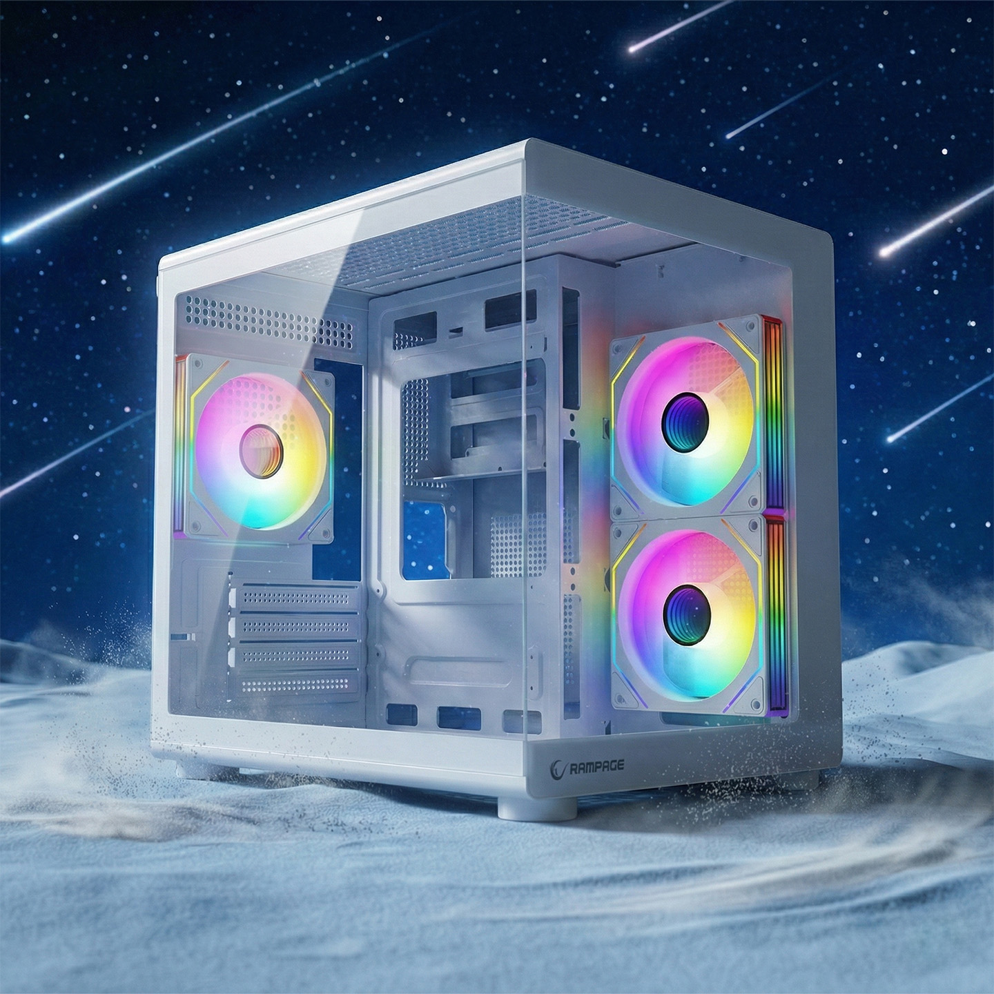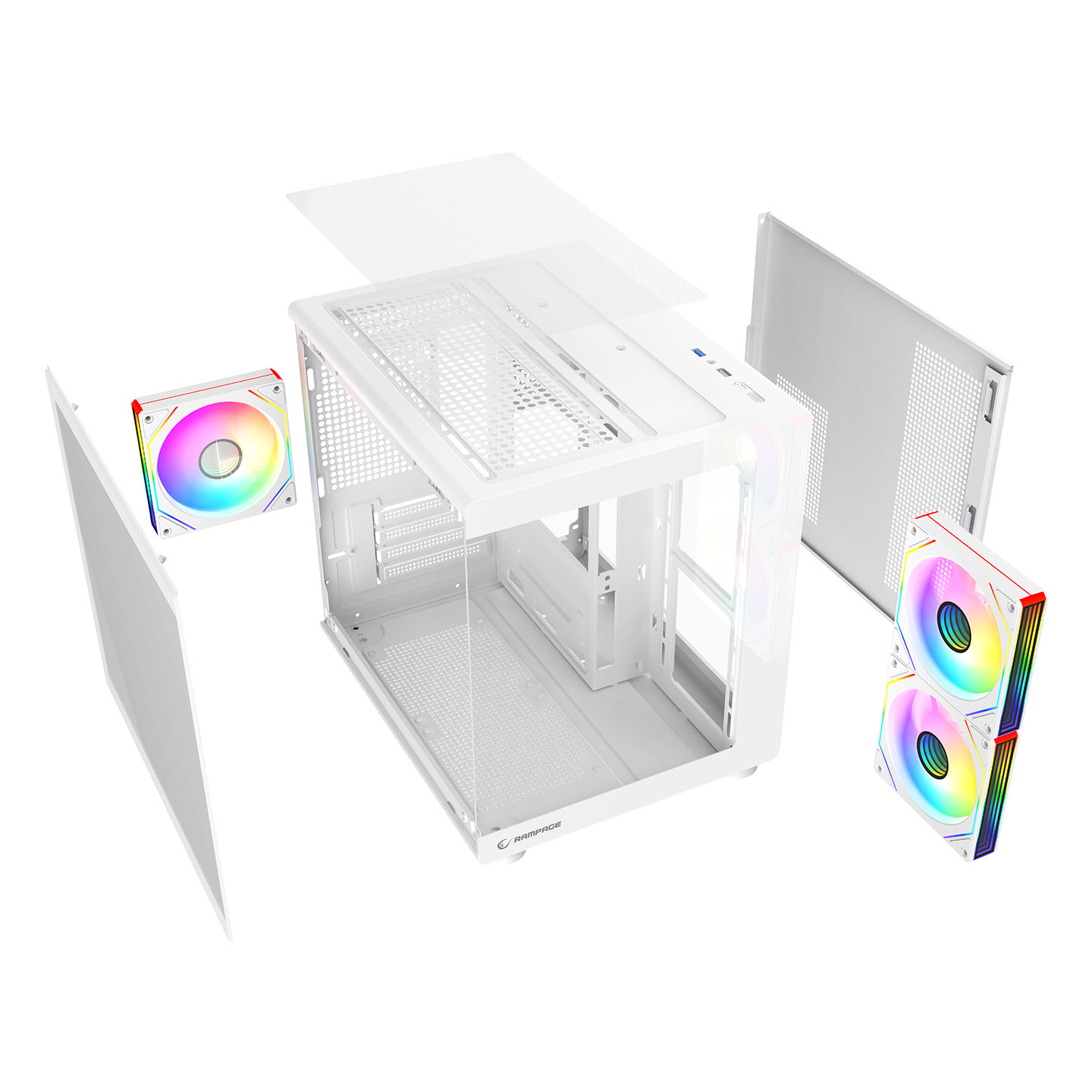 Rampage MINID V1 750W 80 Plus Bronze M-ATX Temperli Camlı 3*12cm ARGB Fan Beyaz Oyuncu Kasası