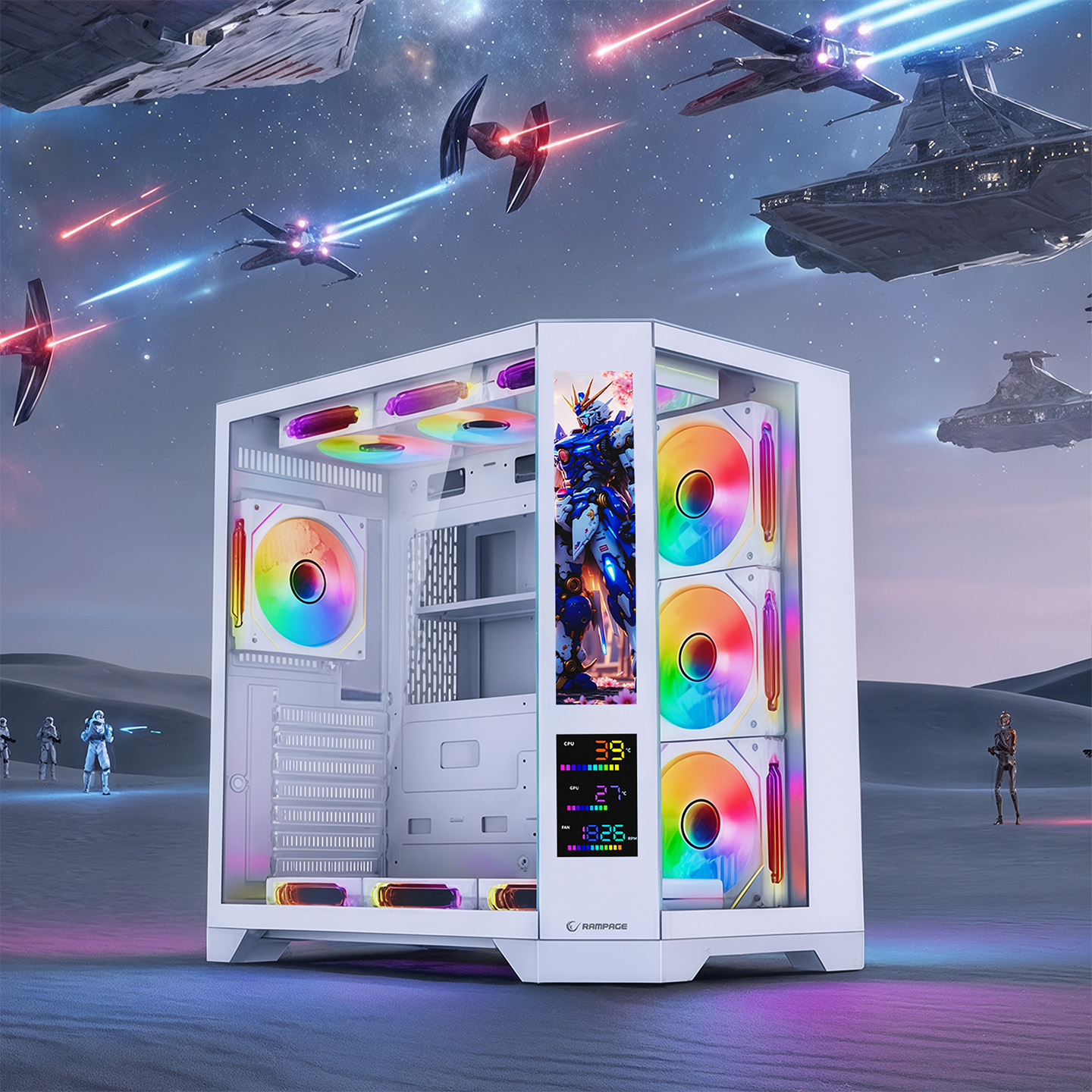 Rampage NOVA V2 9.16 Lcd Ekranlı Hub+Kumanda Beyaz 7x12cm ARGB Pwm Fan Gaming Oyuncu Kasası ÜRÜN KODU 43467 BARKOD 8680096153396 Genel Bakış Teknik Özellikler Sürücüyü indirmek için TIKLAYIN