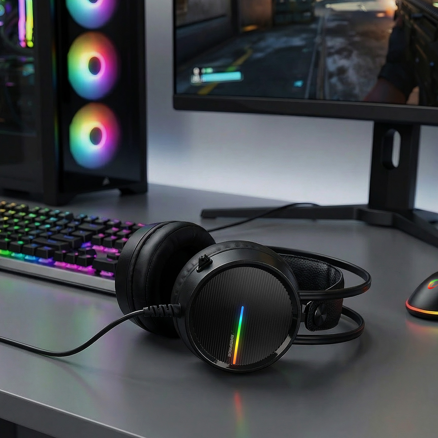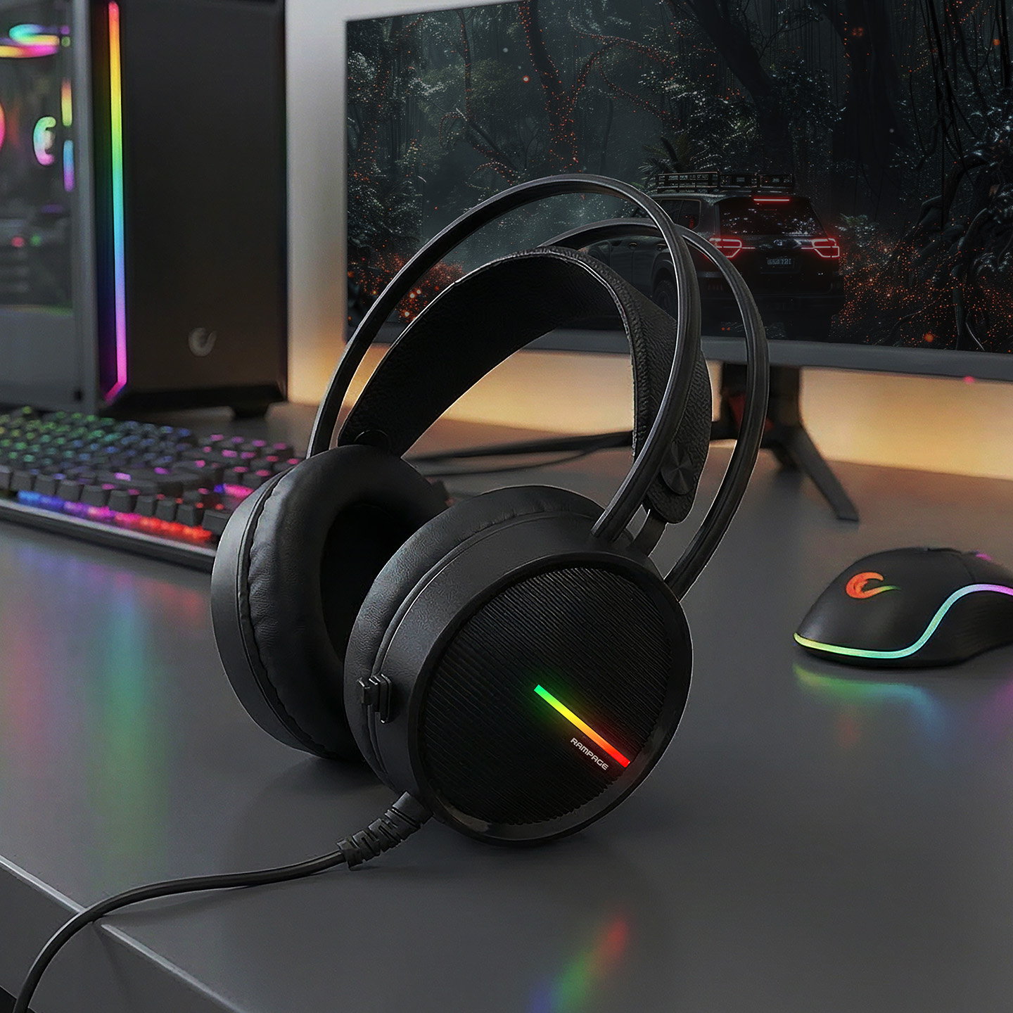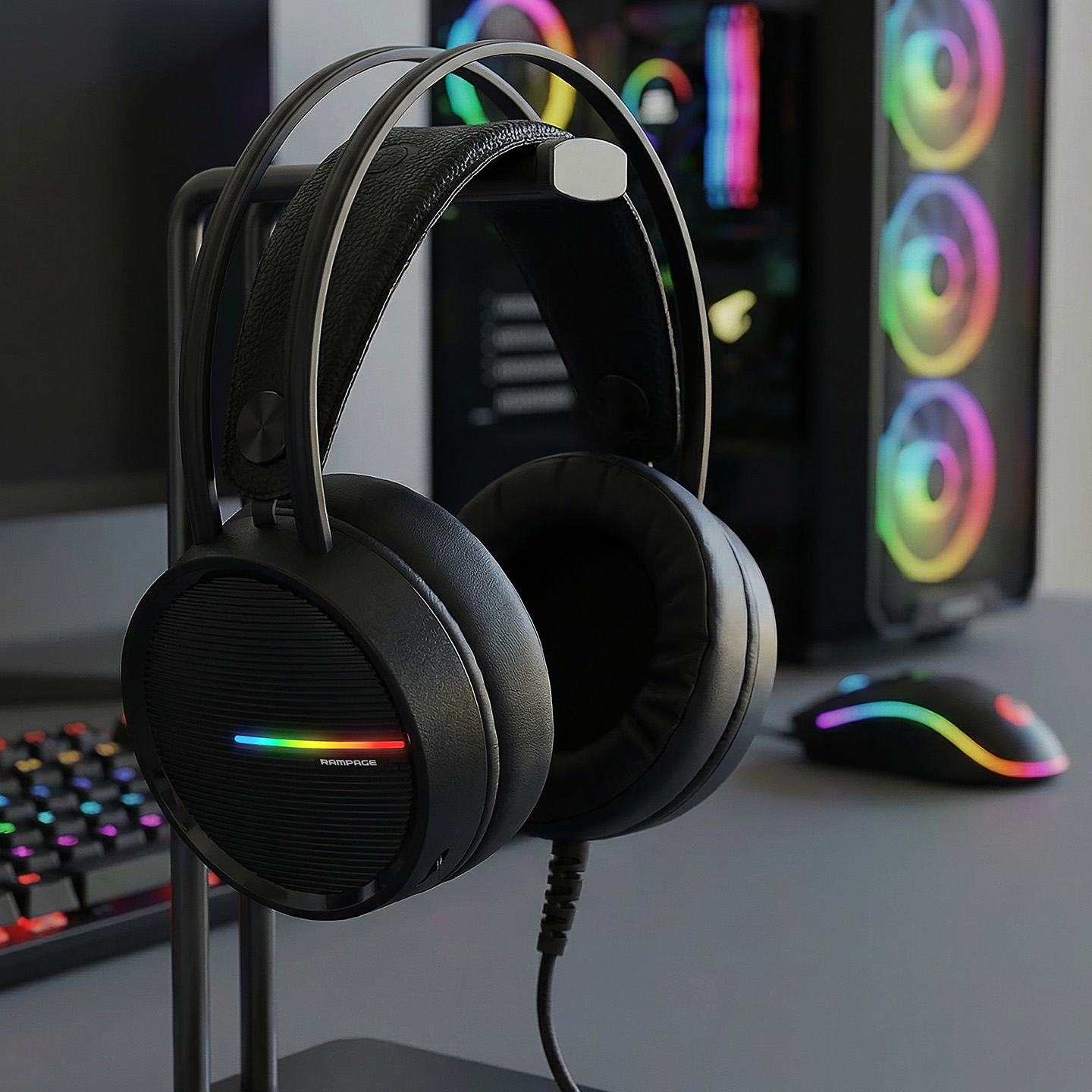 Rampage RM-K3 CASHE USB 7.1 Rainbow Ledli Siyah Surround Sağlam Gaming Oyuncu Mikrofonlu Kulaklık