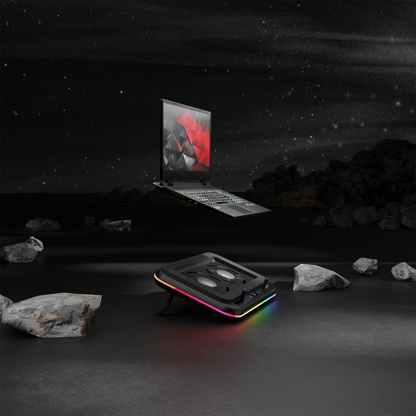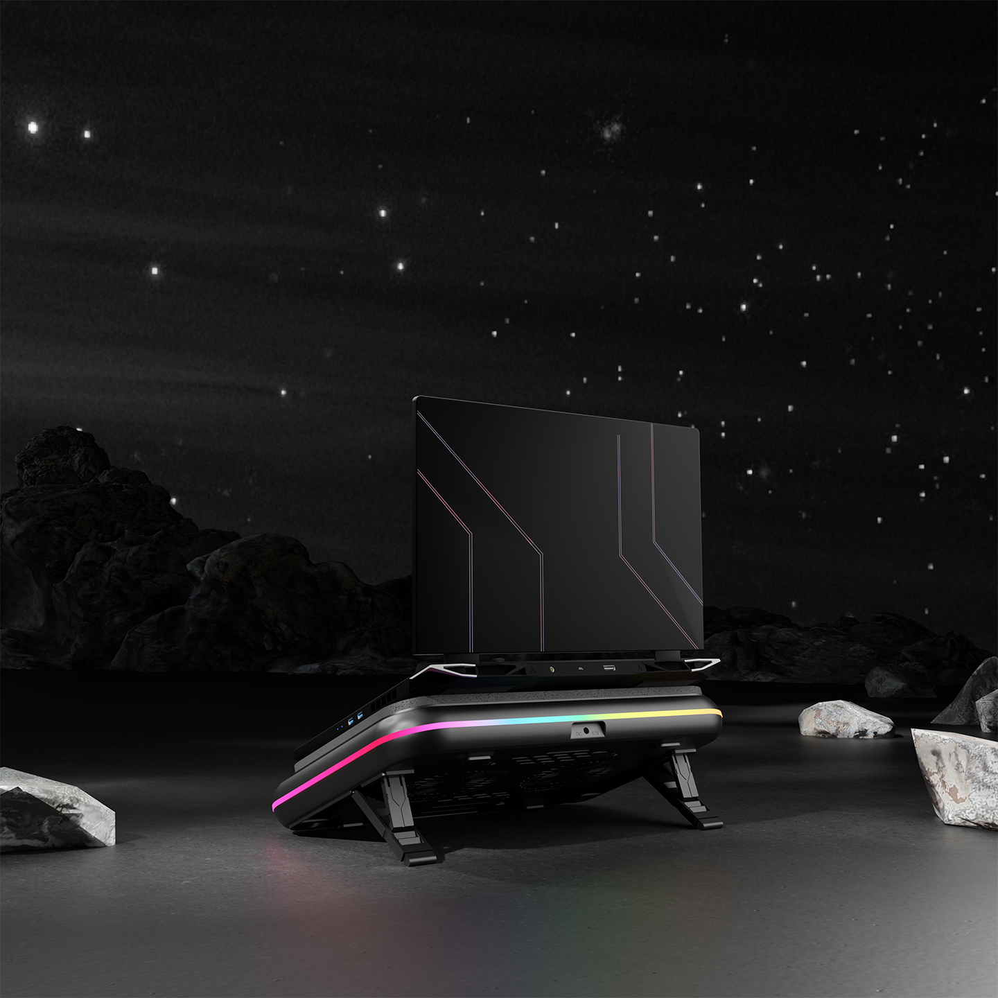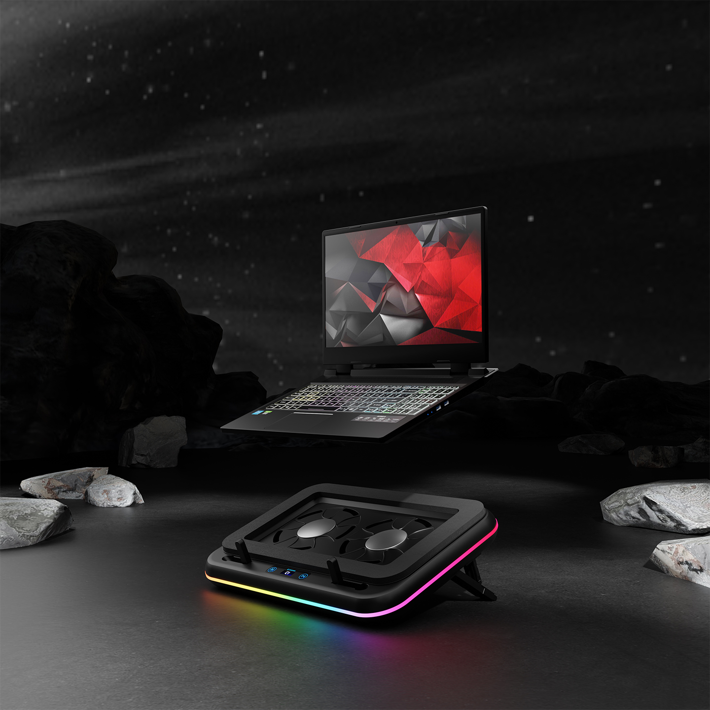Rampage S55 Angel Siyah 5 Mod RGB 120*120mm 2 Fanlı 14-17 Led Ekranlı Notebook Soğutucu Stand