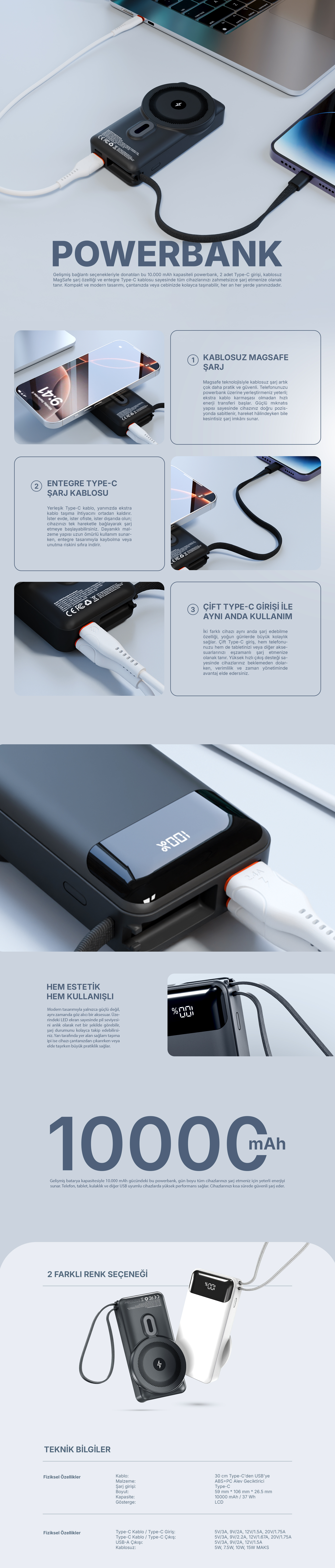 S-link G360 10000mAh PD35W+Magsafe 15W Type-C Kablolu Siyah LCD Taşınabilir Pil Şarj Cihazı Powerbank ÜRÜN KODU 42422 BARKOD 8680096147715 Genel Bakış Teknik Özellikler Sürücüyü indirmek için TIKLAYIN