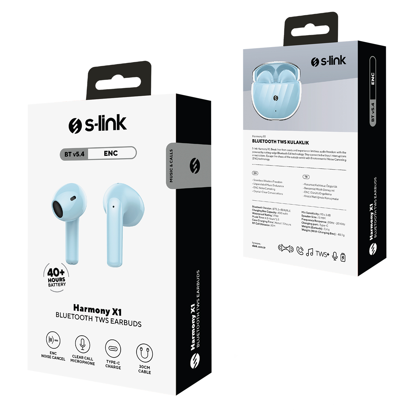 S-link Harmony X1 Mavi 4 Mikrofonlu ENC Bluetooth V5.4 TWS Gerçek Kablosuz Kulaklık