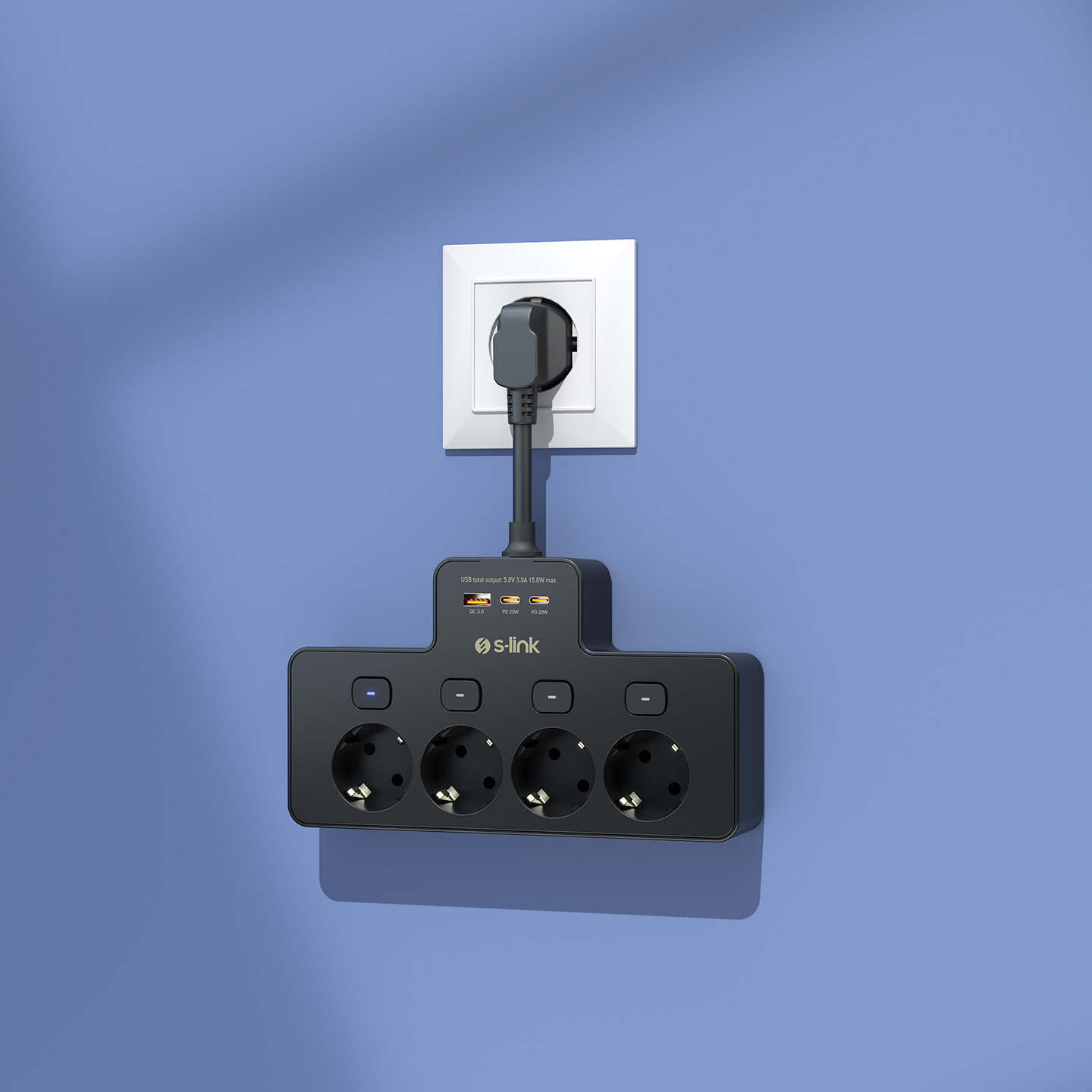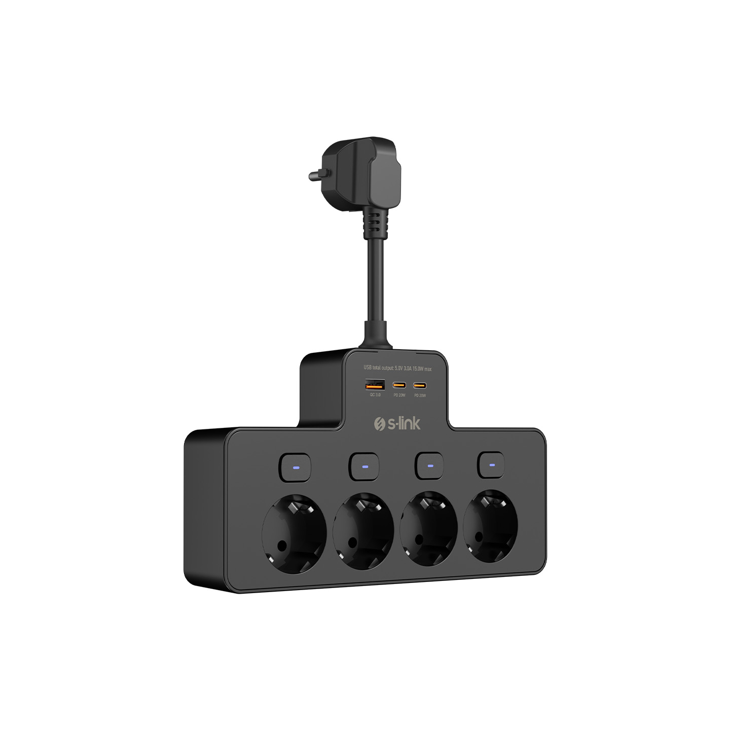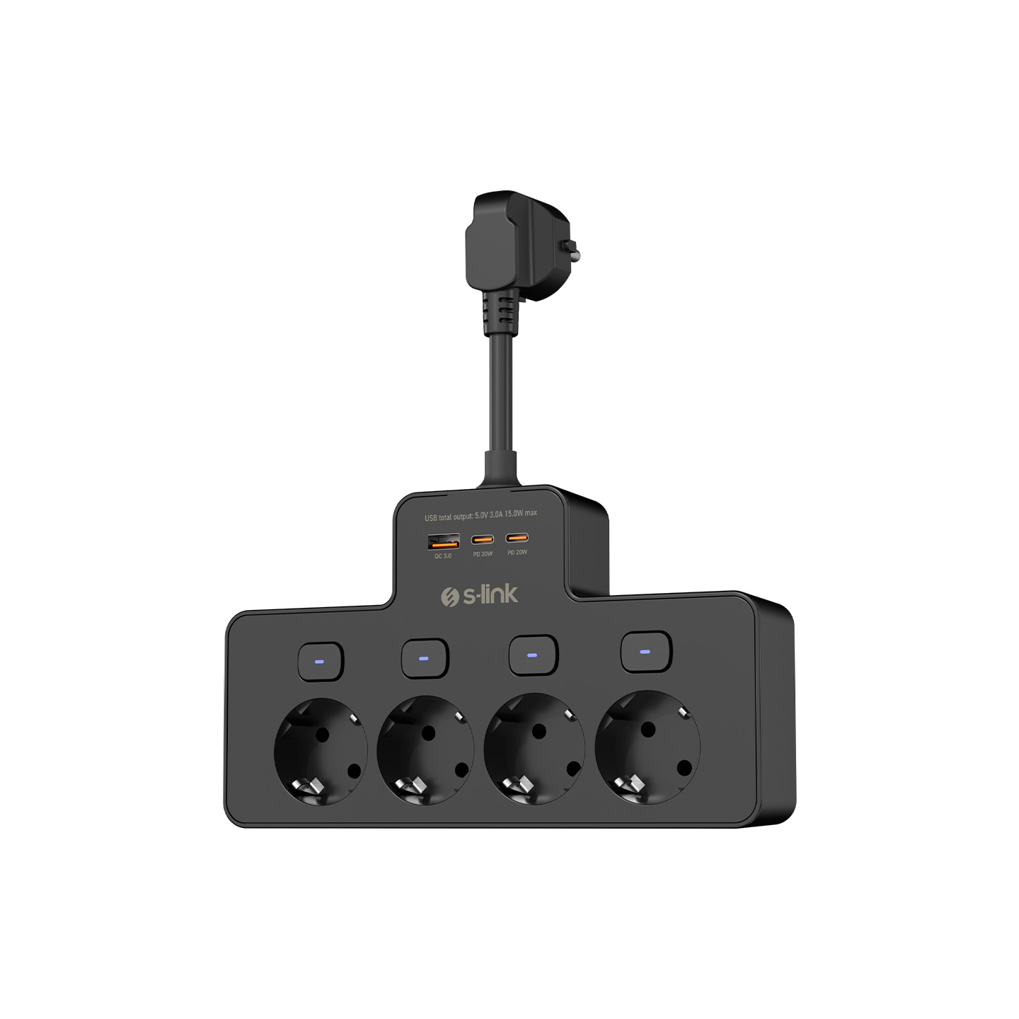 S-link PRZ08 Siyah 4 Soketli 15cm 1 USB 2 Type-C PD20W Tam Bakır Kablolu Akım Korumalı Priz ÜRÜN KODU 43253 BARKOD 8680096152269 Genel Bakış Teknik Özellikler Sürücüyü indirmek için TIKLAYIN