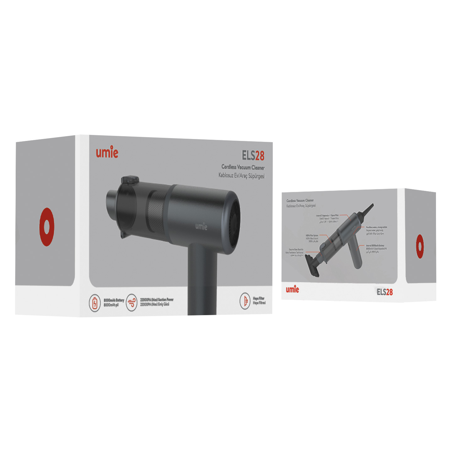 Umie ELS28 Gri 8000mAh Şarjli 22000PA Emiş 140W Fırçasız Motor 10 In 1 Kablosuz Üflenebilir Ev Araç El Süpürgesi ÜRÜN KODU 43128 BARKOD 8680096151200 Genel Bakış Teknik Özellikler Sürücüyü indirmek için TIKLAYIN